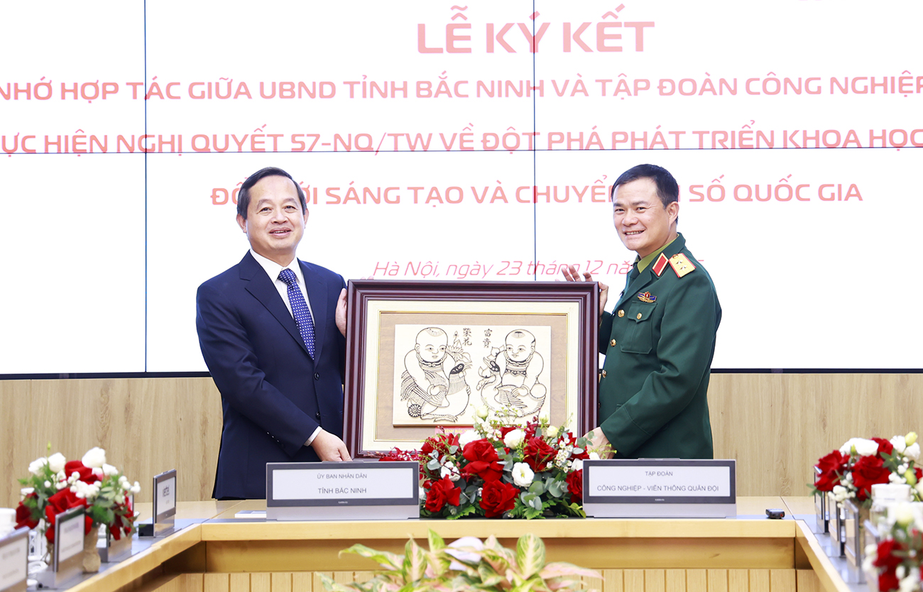 At the ceremony, Chairman Pham Hoang Son and Lieutenant General Tao Duc Thang signed a Memorandum of Understanding to concretize the viewpoints, objectives, tasks and solutions of Resolution No. 57-NQ/TW of the Politburo and Resolution No. 71/NQ-CP of the Government in Bac Ninh province.