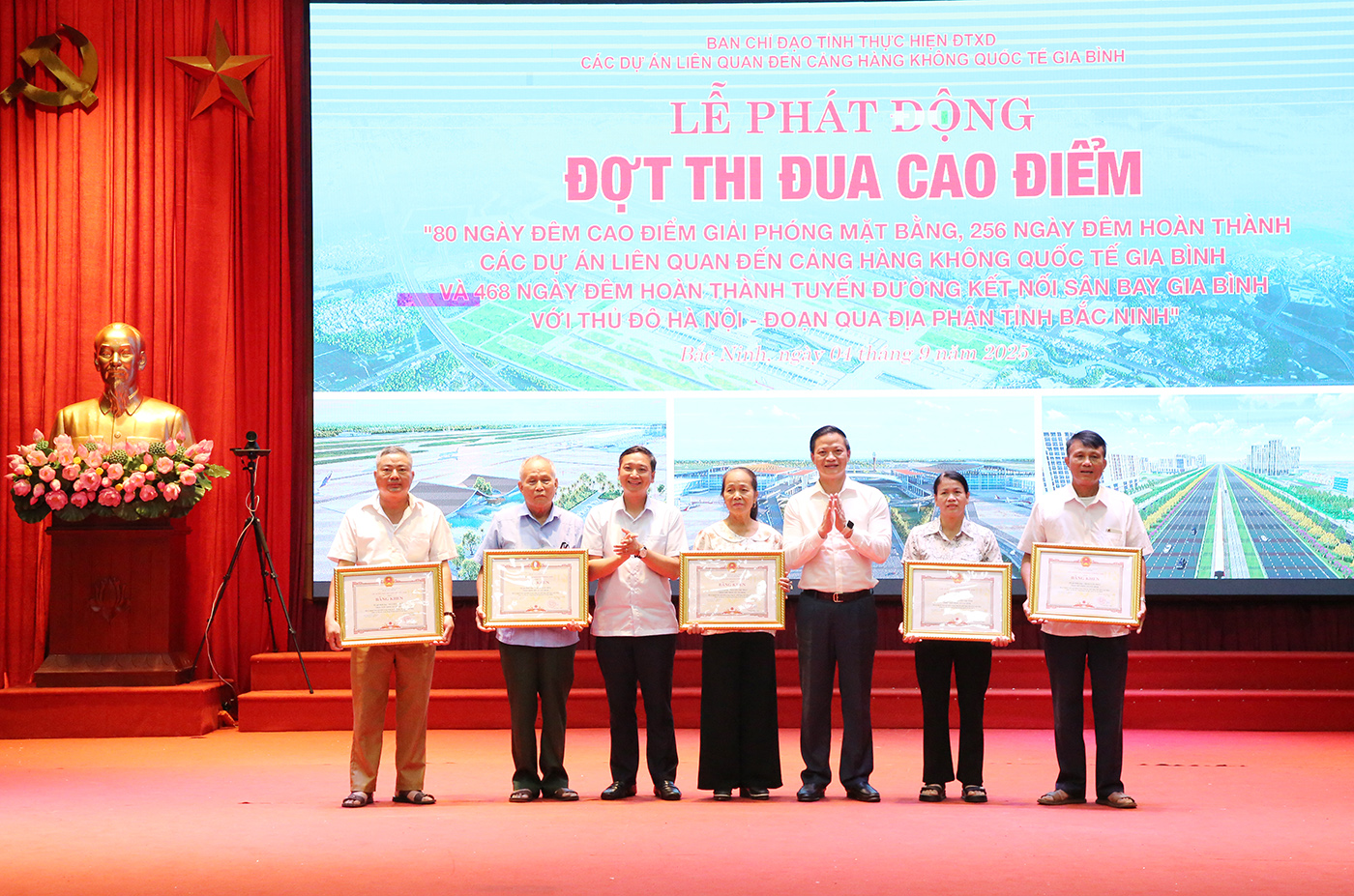 On this occasion, 05 households with outstanding achievements in coordination and handover of land for Gia Binh International Airport project received Certificates of Merit from the Chairman of the Provincial People's Committee; construction contractors and workers and laborers working at the projects received gifts from Bac Ninh province.