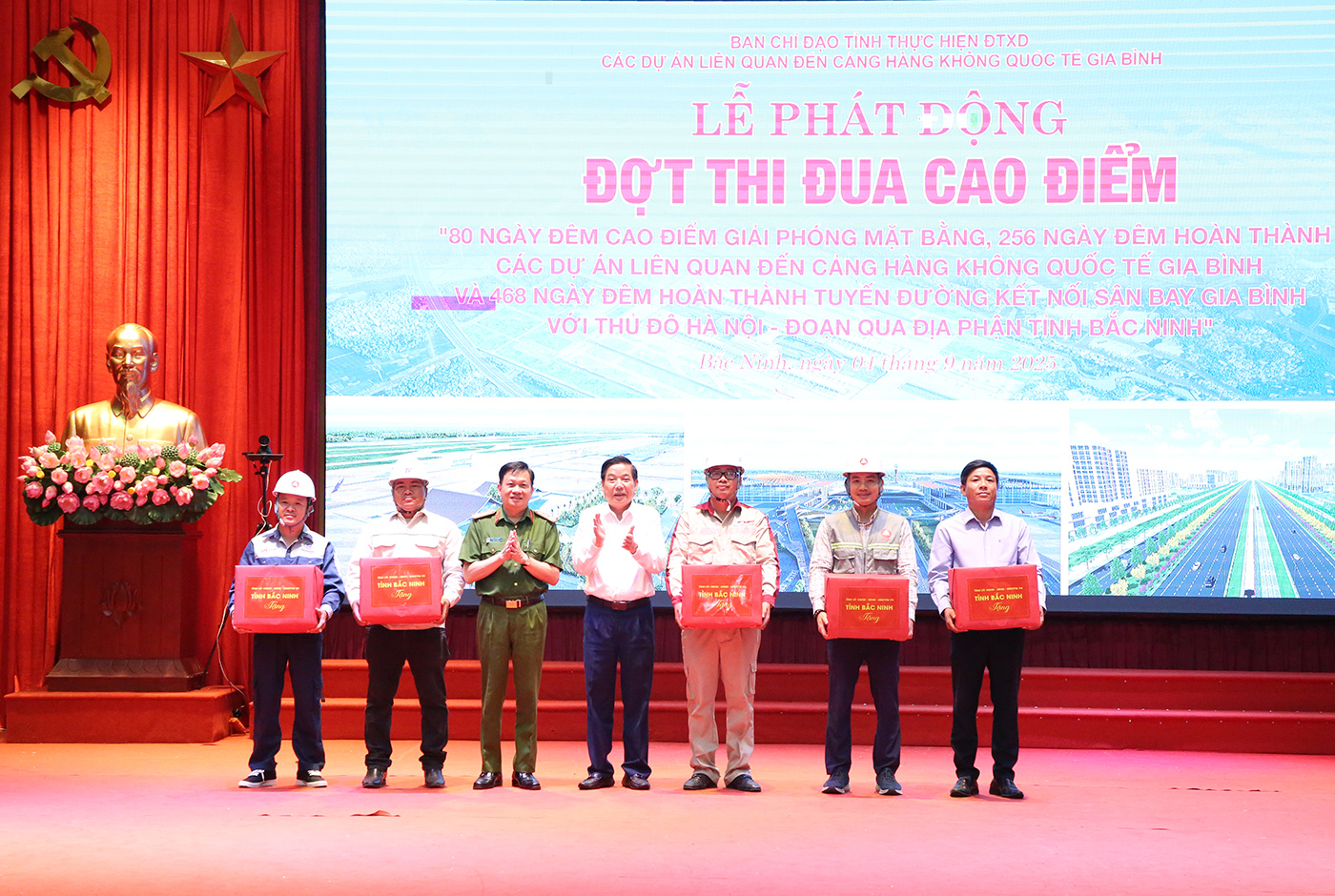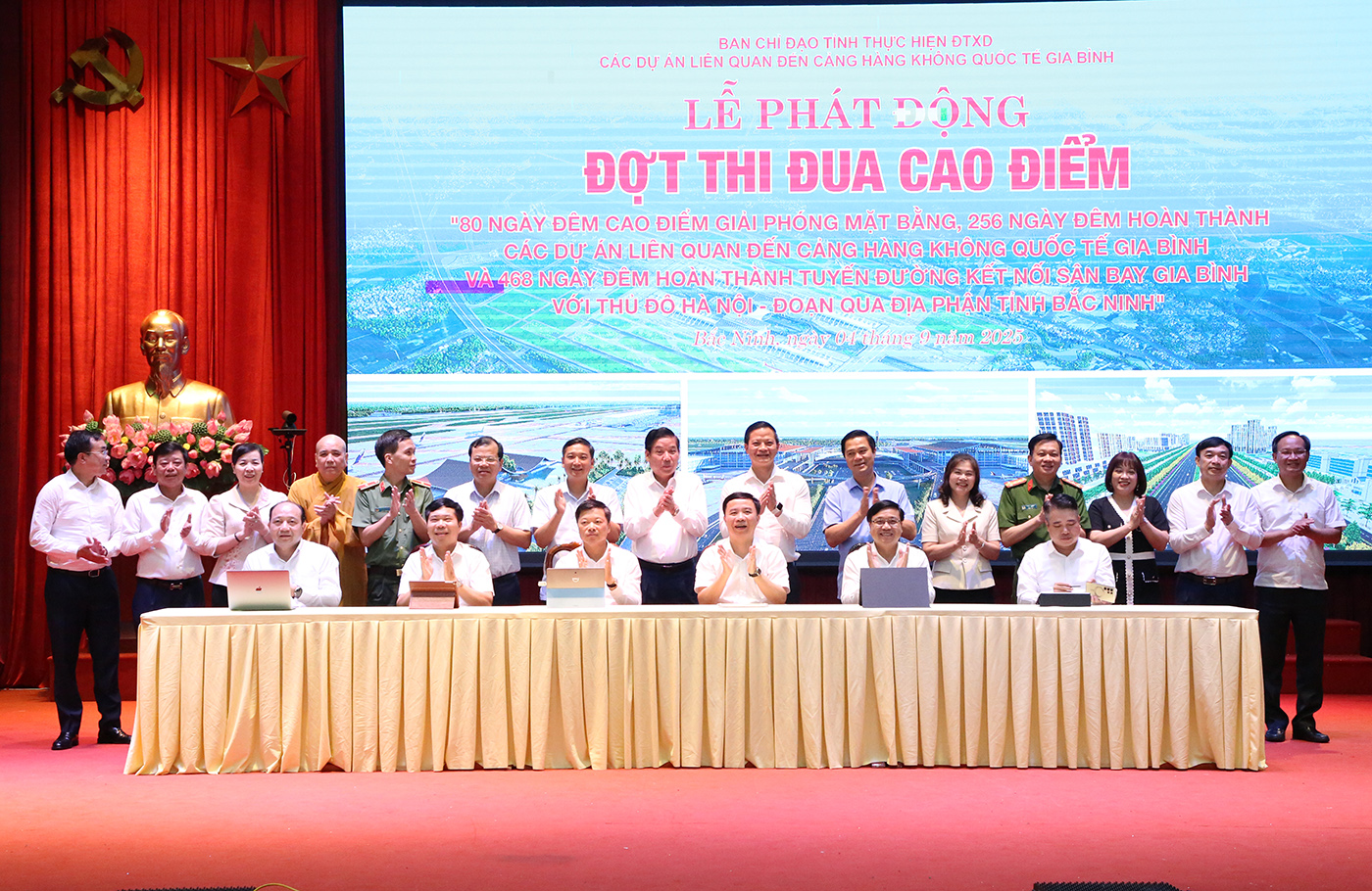 (BNP) - On the afternoon of September 4, at Gia Binh commune, the Provincial Steering Committee for Investment and Construction of Projects Related to Gia Binh International Airport (Provincial Steering Committee) held a launching ceremony for the emulation movement "80 peak days and nights of site clearance, 256 days and nights to complete projects related to Gia Binh International Airport and 468 days and nights to complete the route connecting Gia Binh airport with Hanoi capital - the section passing through Bac Ninh province".