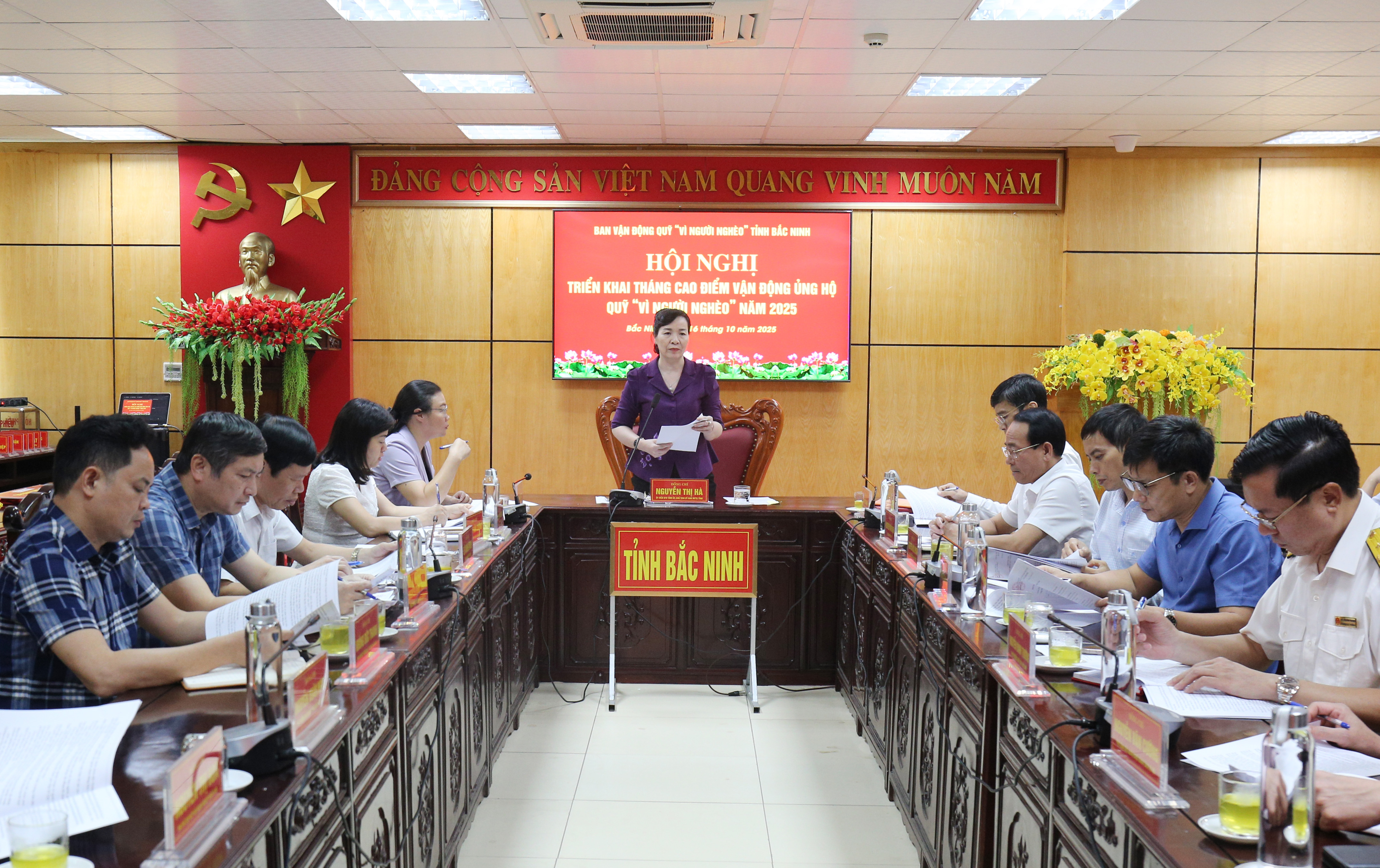 (BNP) – On the morning of October 16, the Provincial Mobilization Committee of the “For the Poor” Fund held a conference to launch the Peak Month of mobilizing support for the “For the Poor” Fund in 2025. Chairwoman of the Provincial Fatherland Front Committee and Deputy Head of the Provincial Mobilization Committee Nguyen Thi Ha chaired the conference.