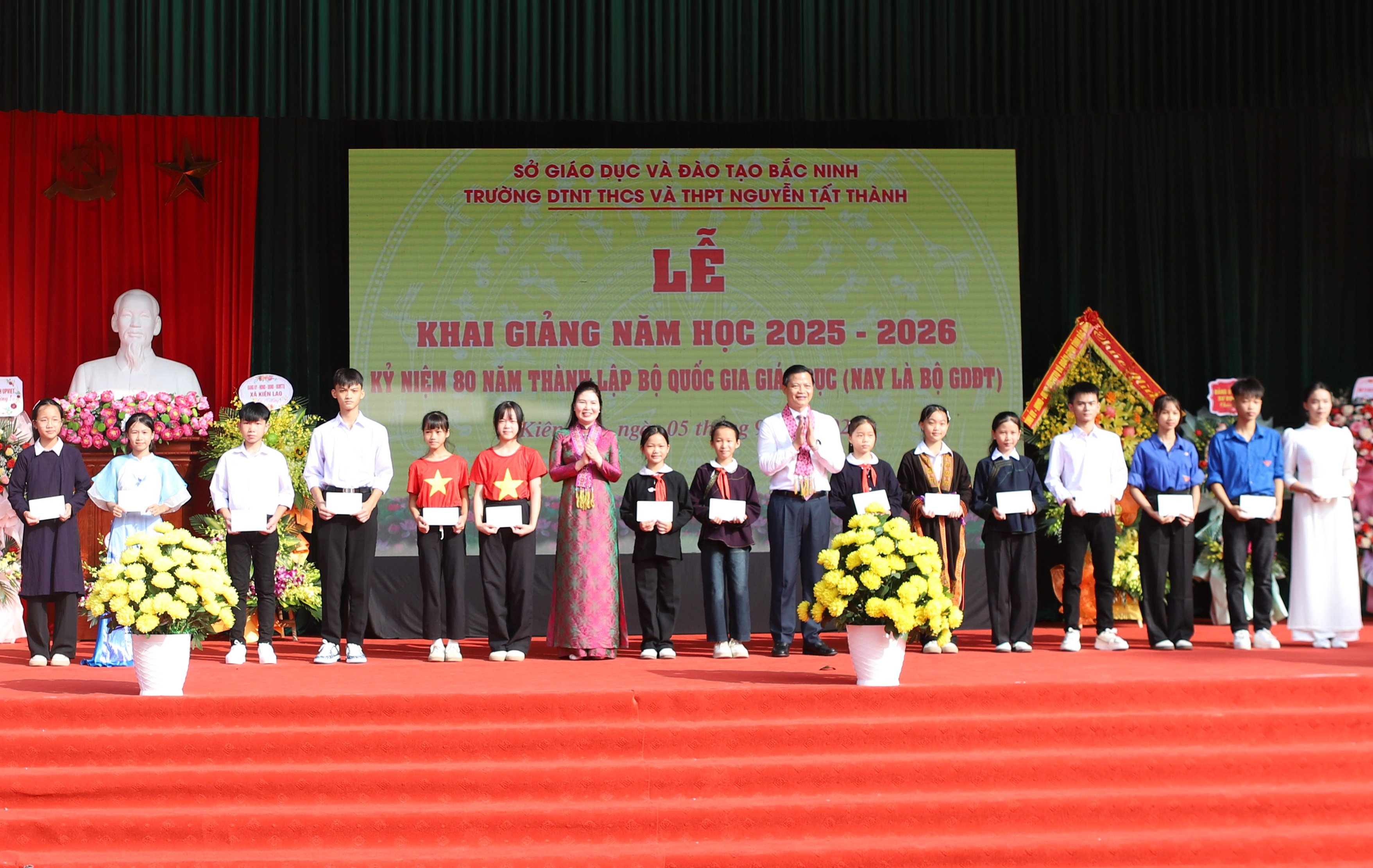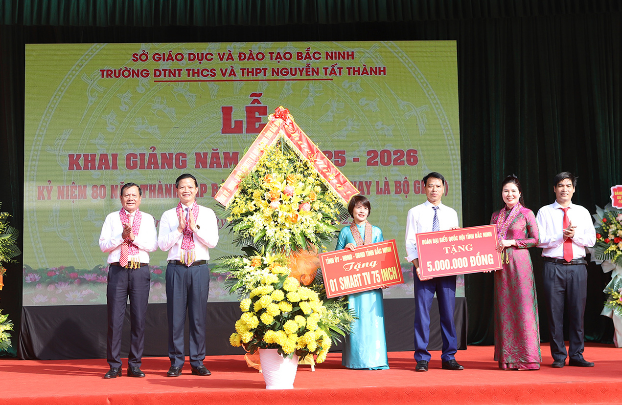 (BNP) - On the morning of September 5, Chairman of the Provincial People's Committee Vuong Quoc Tuan attended the opening ceremony of the 2025-2026 school year at Nguyen Tat Thanh Secondary and High School for Ethnic Minorities. Deputy Head of the Provincial Delegation of National Assembly Deputies Tran Thi Van also attended the opening ceremony.