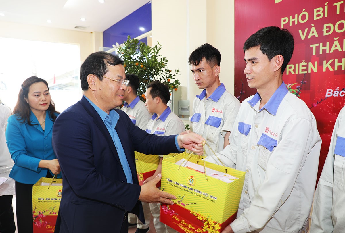 On the occasion of the Lunar New Year, the Standing Deputy Secretary of the Provincial Party Committee and members of the delegation presented 50 gifts to workers and employees of Rang Dong Light Bulb and Thermos Flask Joint Stock Company.