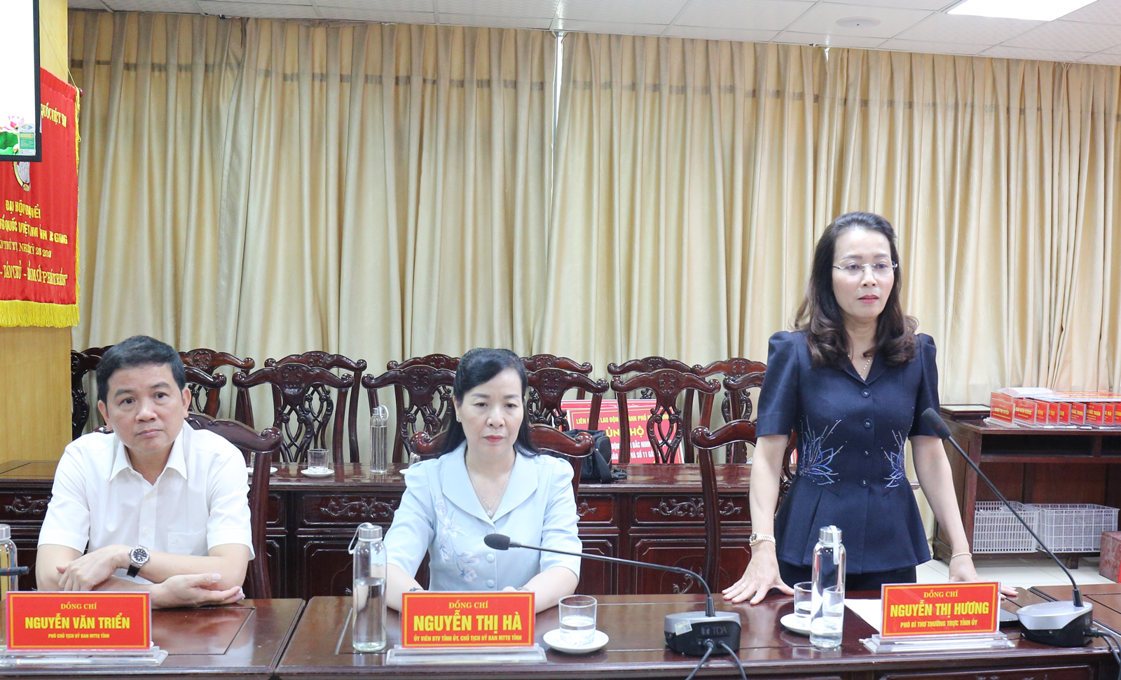 Standing Deputy Secretary Nguyen Thi Huong speaks at the reception.