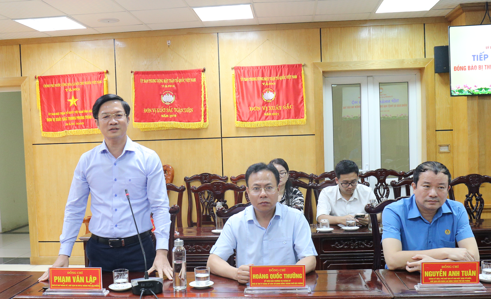 Receiving the delegation of Hai Phong city were Mrs. Nguyen Thi Huong, Standing Deputy Secretary of the Provincial Party Committee; Mrs. Nguyen Thi Ha, Chairwoman of the Provincial Fatherland Front Committee.
