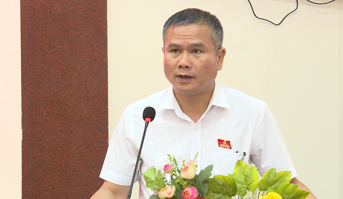 Đồng chí Vũ Đăng Hùng, Bí thư Đảng ủy phường, Chủ tịch HĐND phường phát biểu tại kỳ họp