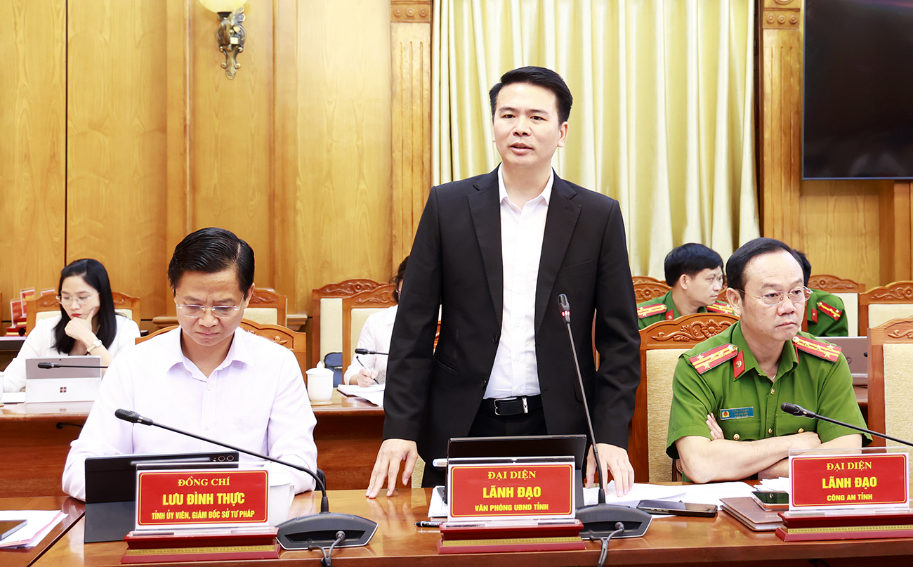 Đồng chí đề nghị UBND tỉnh tiếp tục hoàn thiện báo cáo, nêu rõ các vướng mắc về hành chính, công nghệ, pháp lý để Bộ Tư pháp tổng hợp, báo cáo Chính phủ, bảo đảm hoàn thành rà soát, cắt giảm, đơn giản hóa thủ tục trước ngày 15/11/2025.