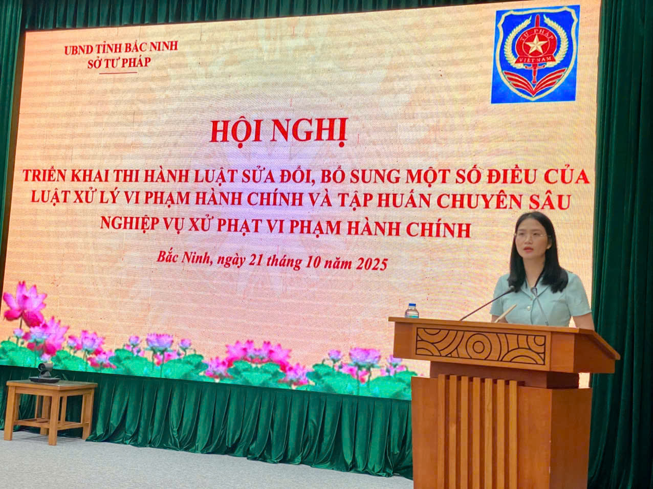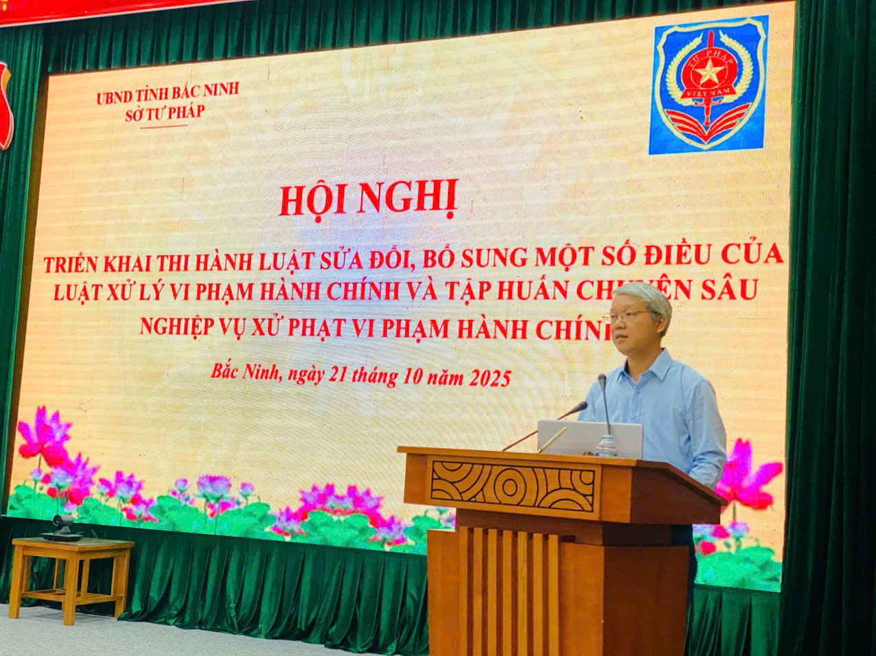 Thực hiện Kế hoạch số 55/KH-UBND ngày 05/9/2025 của Chủ tịch UBND tỉnh Bắc Ninh triển khai thi hành Luật Sửa đổi, bổ sung một số điều của Luật Xử lý vi phạm hành chính trên địa bàn tỉnh Bắc Ninh; Kế hoạch số 28/KH-STP ngày17/9/2025 của Sở Tư pháp triển khai thi hành Luật Sửa đổi, bổ sung một số điều của Luật Xử lý vi phạm hành chính; ngày 21/10/2025, Sở Tư pháp tổ chức Hội nghị trực tuyến triển khai thi hành Luật Sửa đổi, bổ sung một số điều của Luật Xử lý vi phạm hành chính năm 2025 và tập huấn chuyên sâu nghiệp vụ xử phạt vi phạm hành chính. Dự và chủ trì hội nghị tại điểm cầu tỉnh có đồng chí Trương Ngọc Bích – Phó Giám đốc Sở Tư pháp. Tham dự tại các điểm cầu có hơn 1000 đại biểu đại diện cho các cơ quan chuyên môn thuộc UBND tỉnh và các cơ quan trung ương được tổ chức theo ngành dọc trên địa bàn tỉnh và UBND cấp xã.