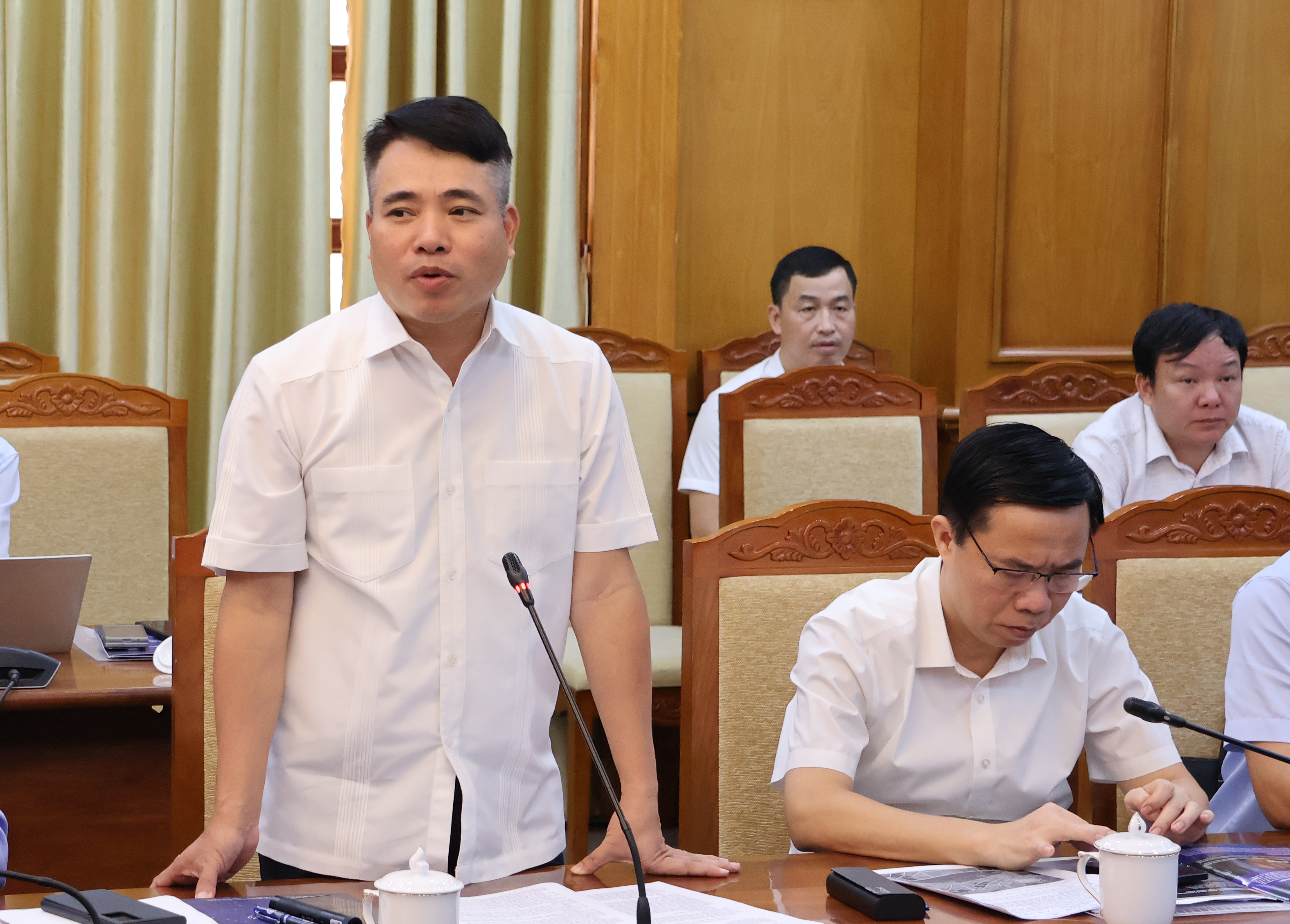 Giám đốc Sở Xây dựng Nguyễn Việt Hùng trao đổi một số nội dung tại buổi làm việc.
