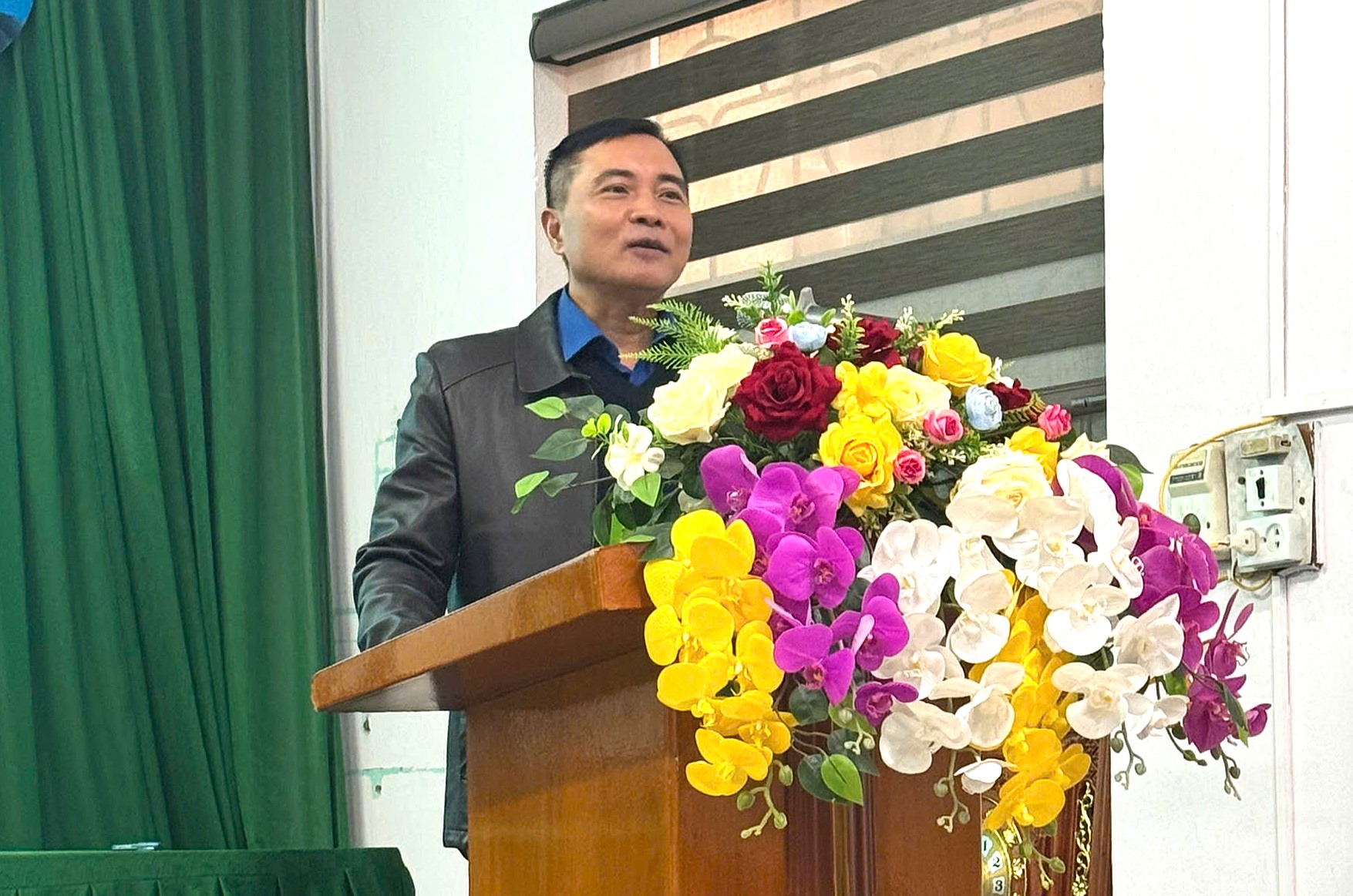 Đồng chí Từ Quốc Hiệu, Phó Giám đốc Sở Y tế phát biểu tại hội nghị bàn giao các Trạm Y tế về UBND xã quản lý.