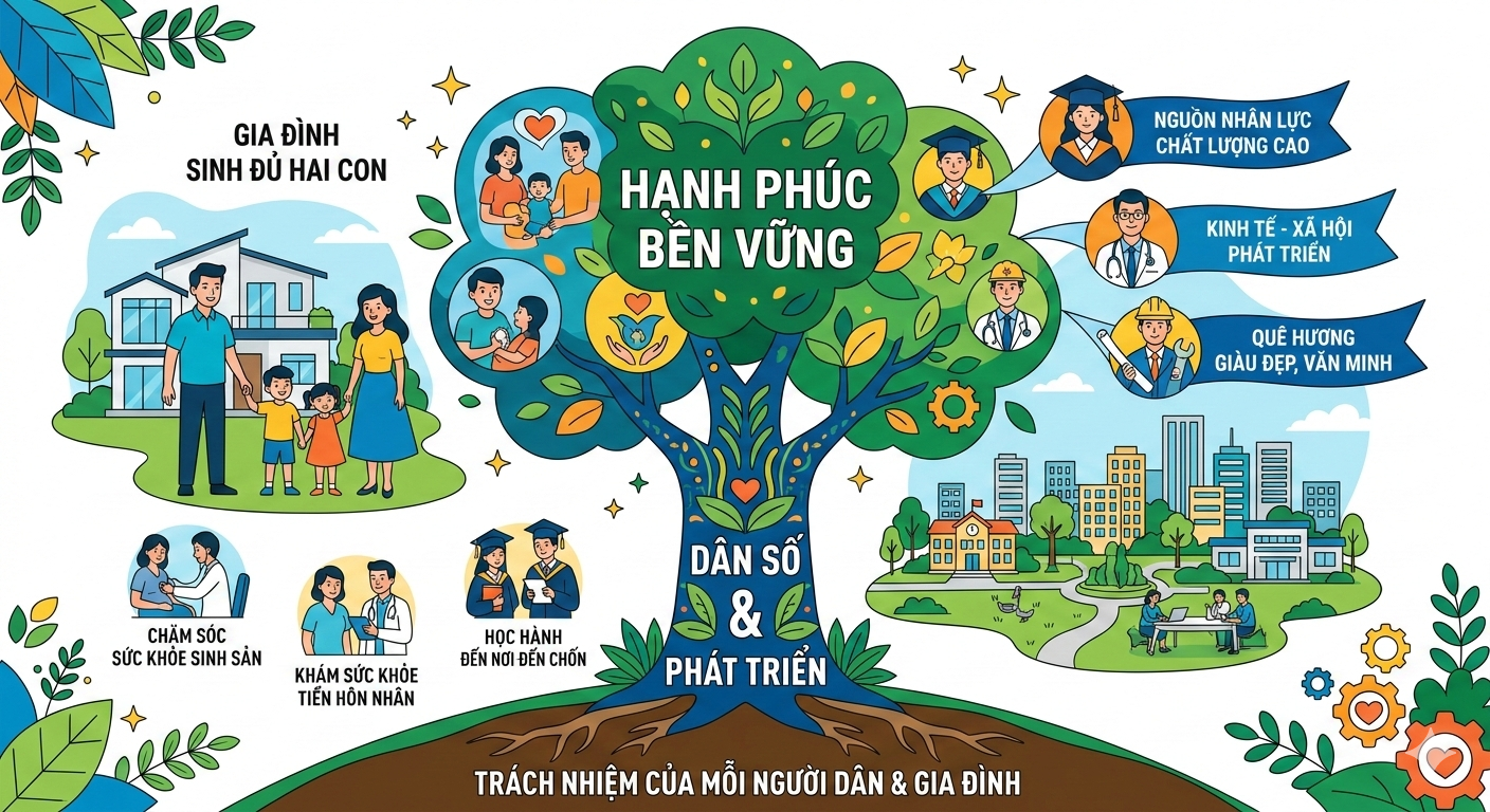 Dân số và phát triển là sự nghiệp của toàn xã hội. Mỗi gia đình thực hiện tốt chính sách dân số chính là góp phần xây dựng cộng đồng khỏe mạnh, hạnh phúc và phát triển bền vững.