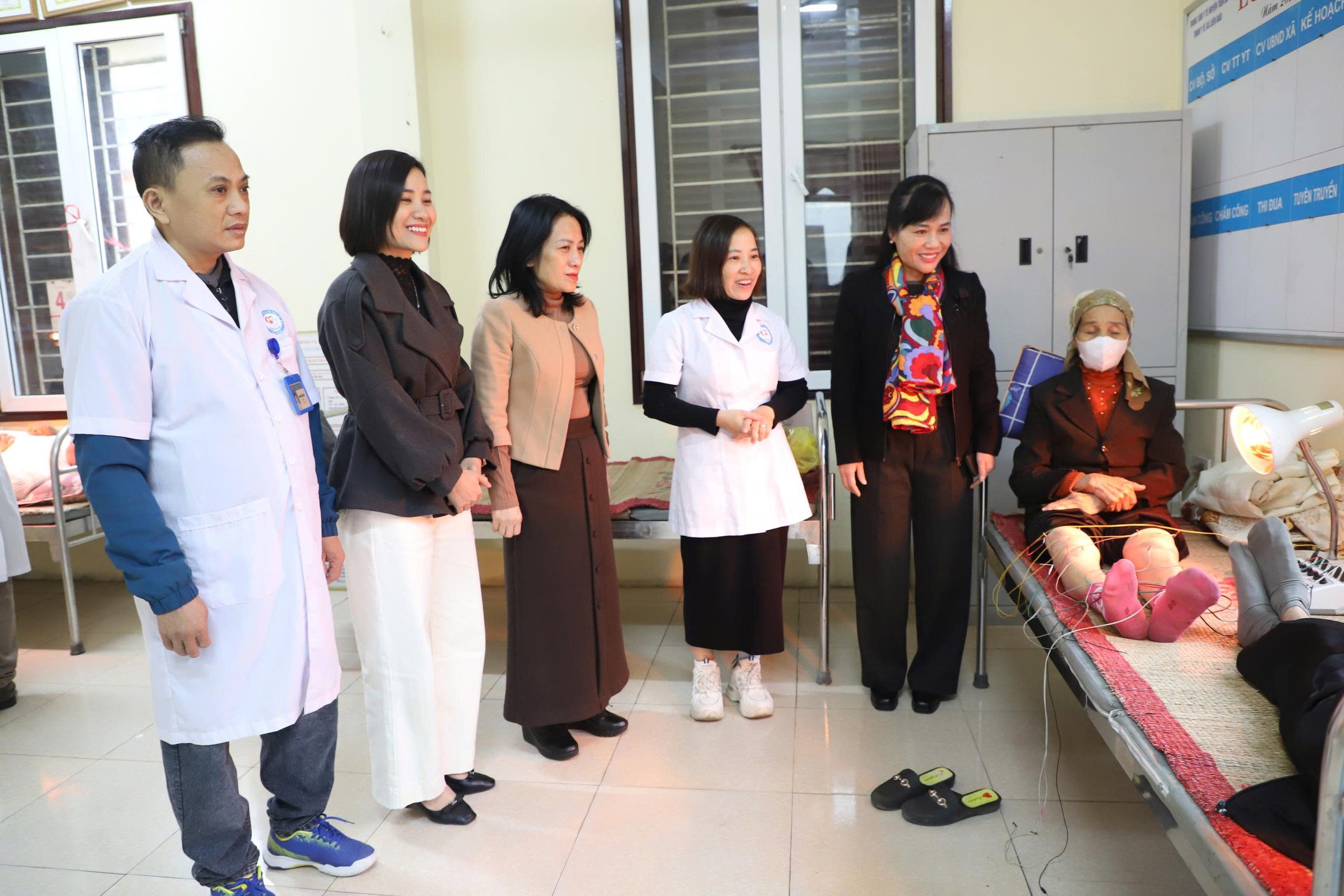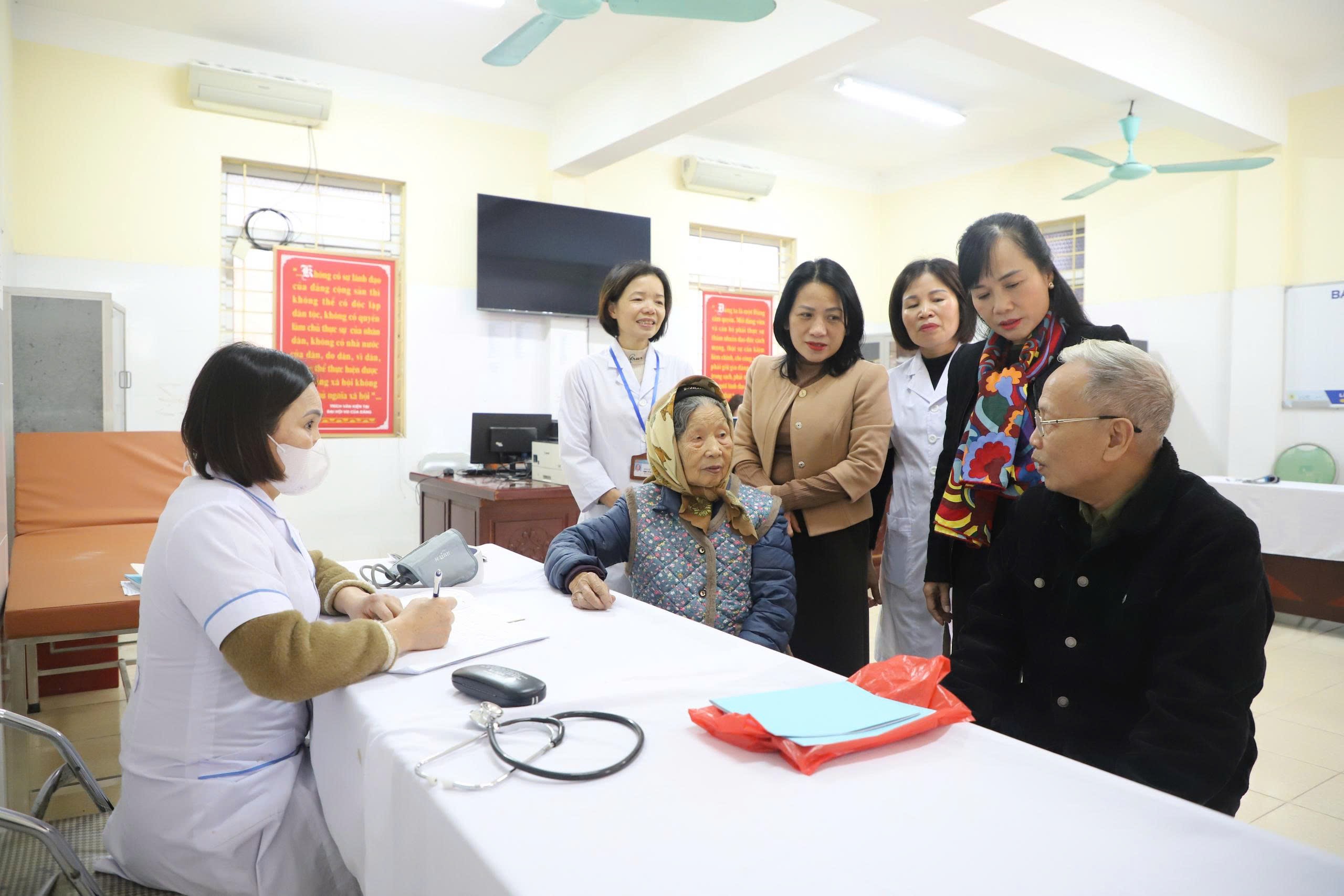 Giám đốc Sở Y tế Tô Thị Mai Hoa thăm hỏi người dân khám bệnh tại Trạm Y tế Hạp Lĩnh