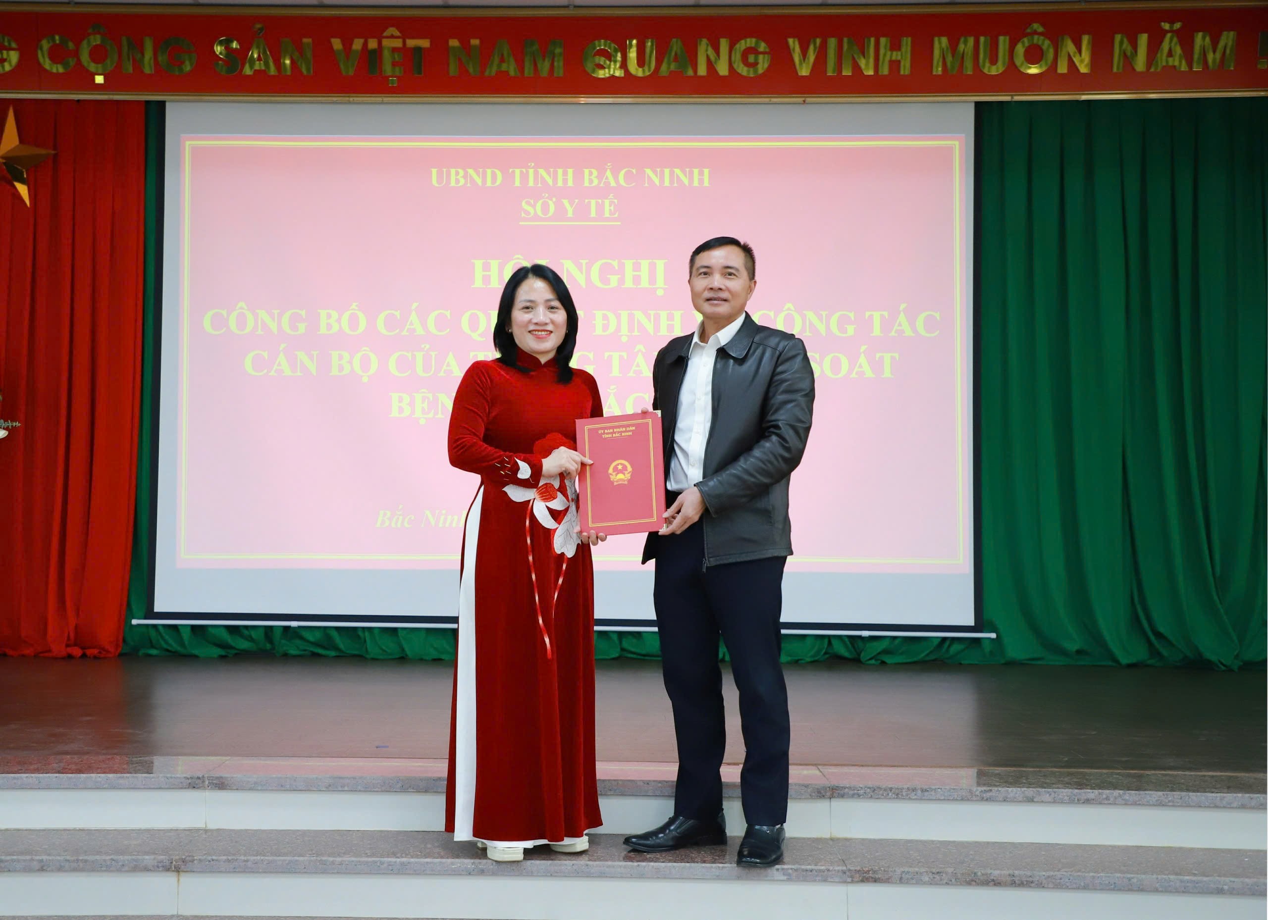 Tại Hội nghị, thừa ủy quyền của chủ tịch UBND tỉnh, đồng chí Từ Quốc Hiệu – Phó Giám đốc Sở Y tế đã trao quyết định bổ nhiệm bà Ngô Thị Xuân – Giám đốc Trung tâm Kiểm soát bệnh tật Bắc Ninh số 2 (trước khi sắp xếp, tổ chức lại đơn vị), giữ chức Giám đốc Trung tâm Kiểm soát bệnh tật Bắc Ninh, trực thuộc Sở Y tế từ ngày 01/01/2026. Thời hạn bổ nhiệm 5 năm (60 tháng), thời gian tính kể từ ngày 07/3/2025.
