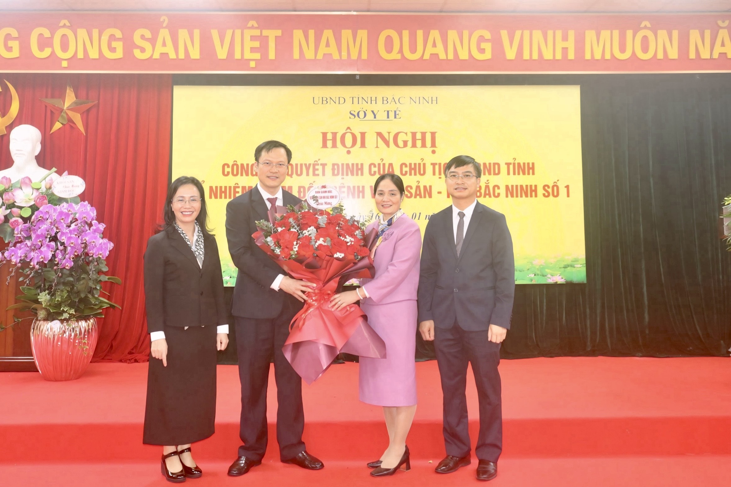 Ban Giám đốc Bệnh viện Sản - Nhi Bắc Ninh số 1 trao tặng bó hoa tươi thắm chúc mừng Giám đốc Hoàng Trường Giang