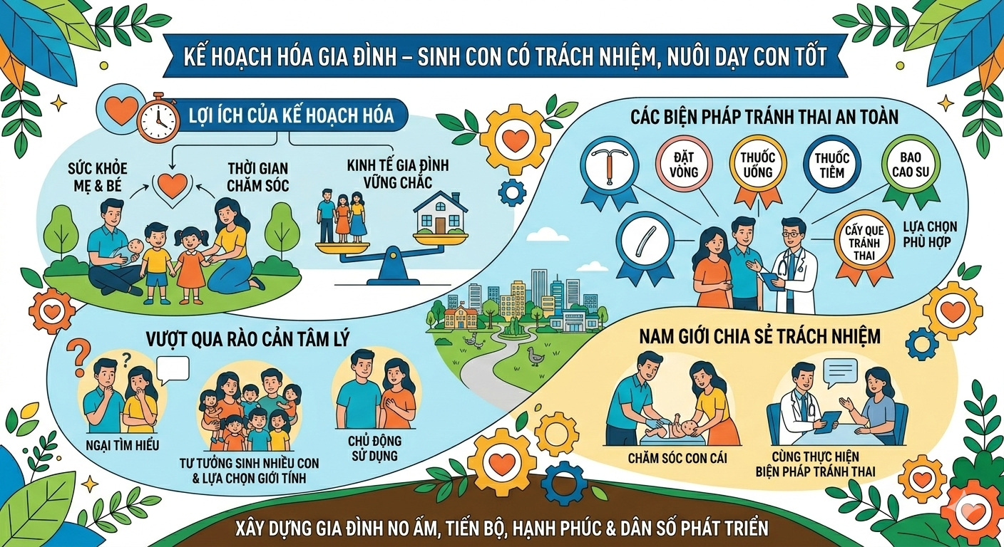 Kế hoạch hóa gia đình là một trong những nội dung quan trọng của công tác Dân số và phát triển. Thực hiện tốt kế hoạch hóa gia đình không chỉ giúp mỗi cặp vợ chồng chủ động trong sinh con mà còn góp phần nâng cao chất lượng cuộc sống của gia đình và xã hội.