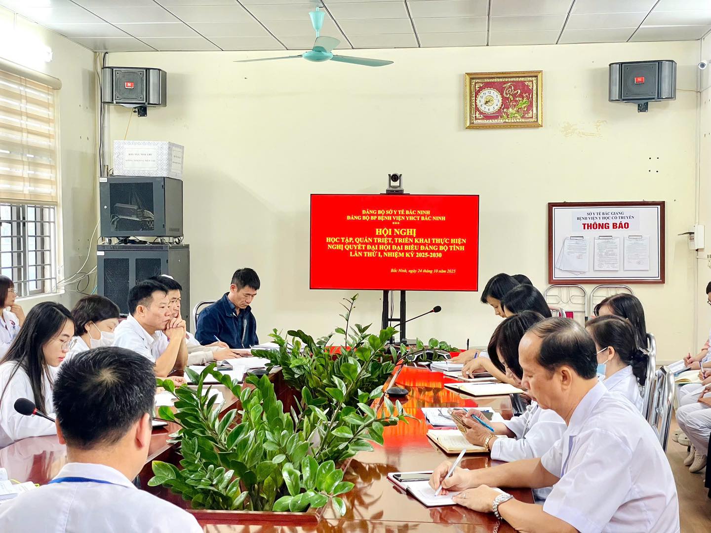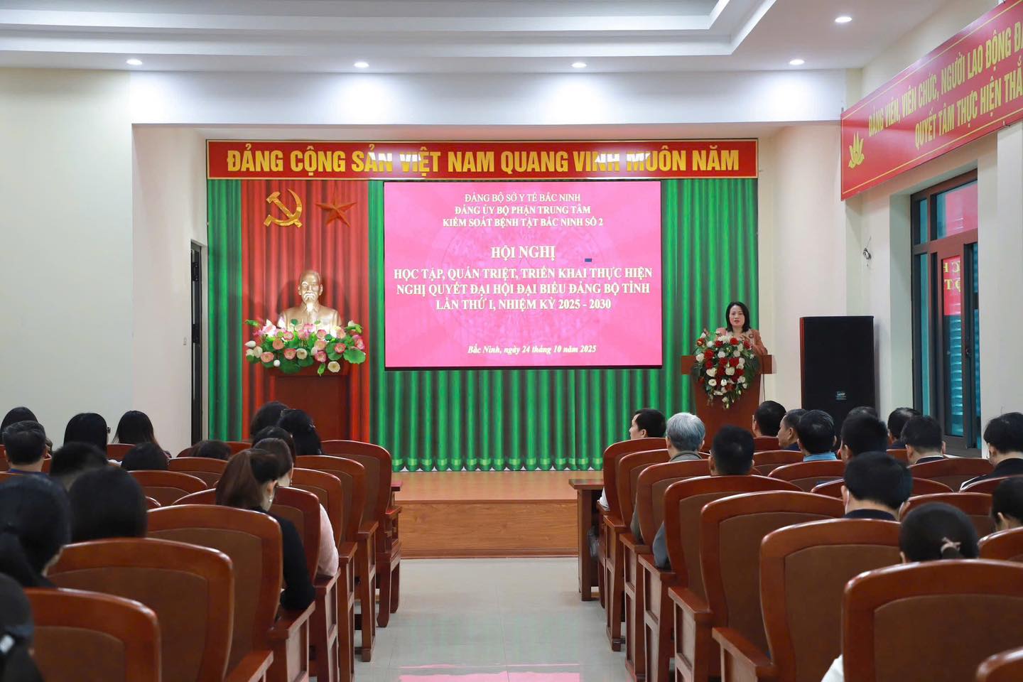 Ngày 24/10, Ban Thường vụ Tỉnh ủy Bắc Ninh tổ chức Hội nghị học tập, quán triệt và triển khai thực hiện Nghị quyết Đại hội đại biểu Đảng bộ tỉnh Bắc Ninh lần thứ I, nhiệm kỳ 2025-2030 tới cán bộ, đảng viên trong toàn Đảng bộ. Đồng chí Nguyễn Hồng Thái, Ủy viên Trung ương Đảng, Bí thư Tỉnh ủy Bắc Ninh dự, chỉ đạo hội nghị. Đảng bộ Sở Y tế chỉ đạo toàn bộ 12 Đảng bộ bộ phận và 13 Chi bộ trực thuộc với hơn 2.100 Đảng viên học tập nghiêm túc Nghị quyết theo hình thức trực tuyến qua truyền hình trực tiếp trên Báo và phát thanh, truyền hình tỉnh.