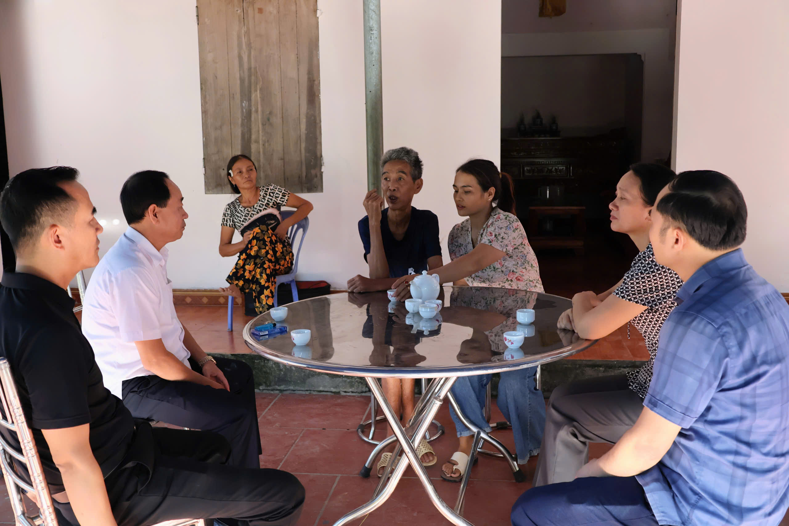 Đại diện lãnh đạo Sở Y tế cùng đại diện UBND, Mặt trận tổ quốc xã Xuân Lương hỏi thăm, động viên gia đình cháu Phan Kiềm M
