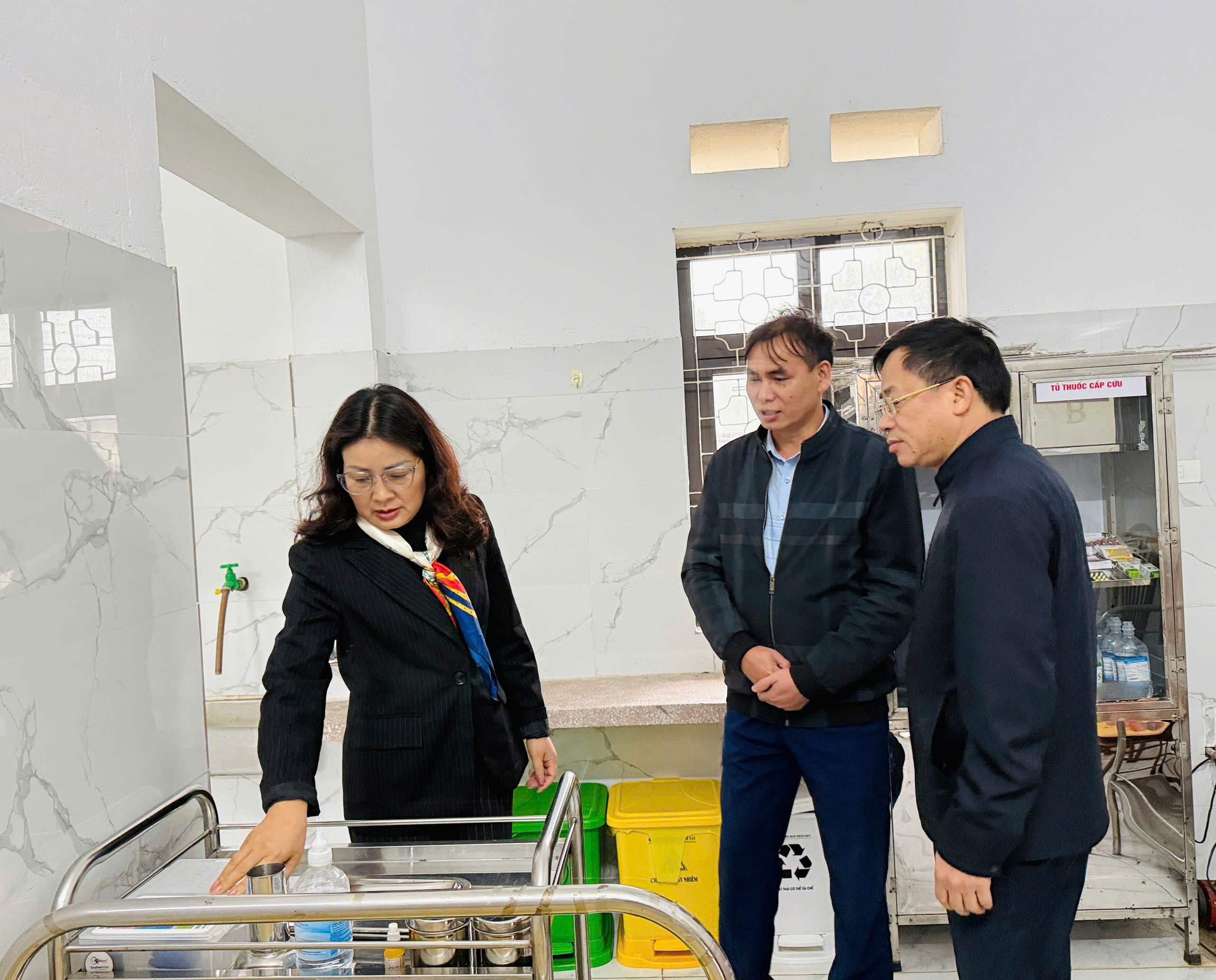 Đồng chí Nguyễn Thị Thu Hương - Phó Giám đốc Sở Y tế kiểm tra công tác y tế tại Trạm Y tế phường Yên Dũng