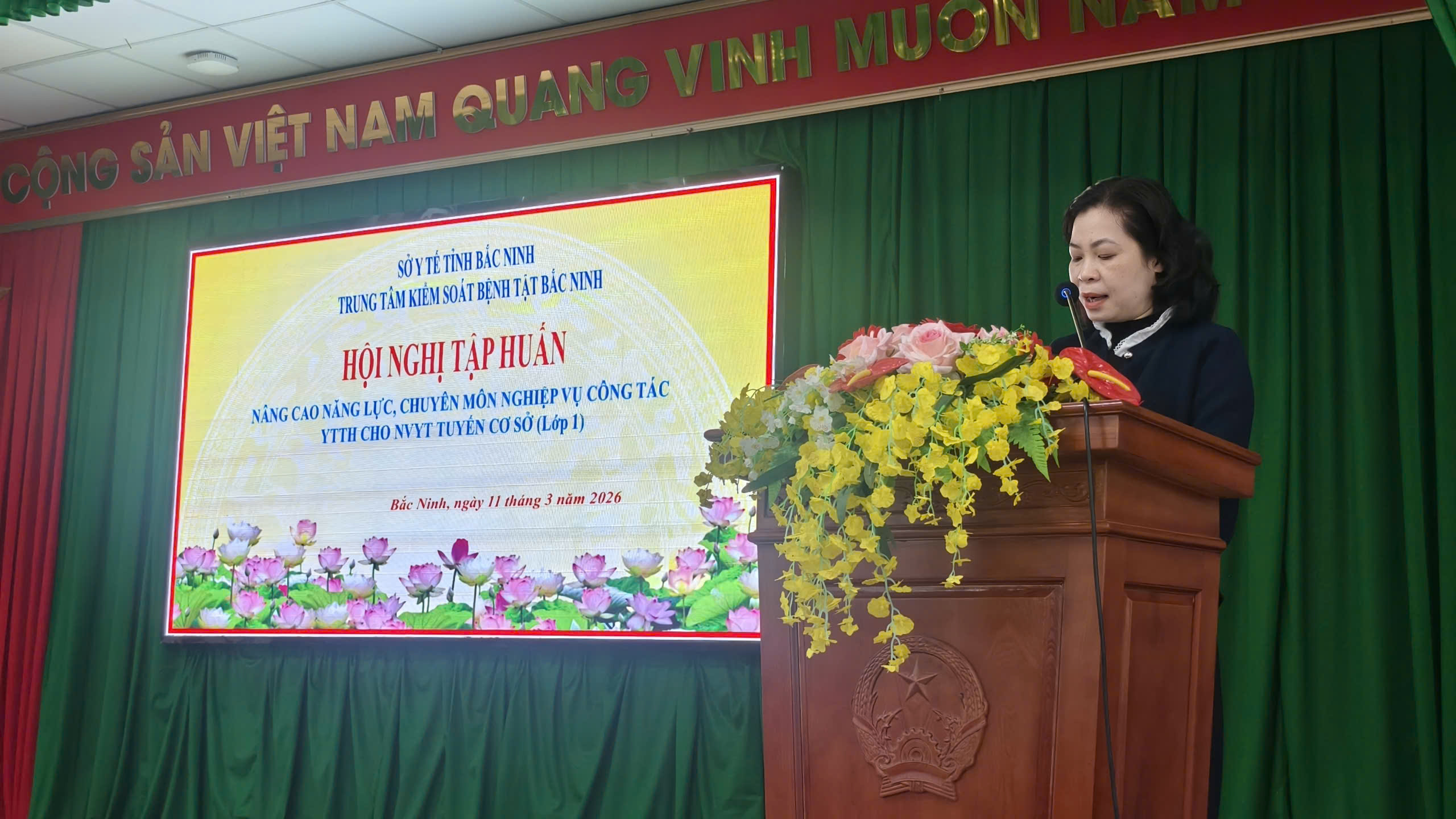 Đồng chí Ngô Thị Thu Hà – Phó Giám đốc Trung tâm Kiểm soát bệnh tật Bắc Ninh phát biểu khai mạc buổi tập huấn