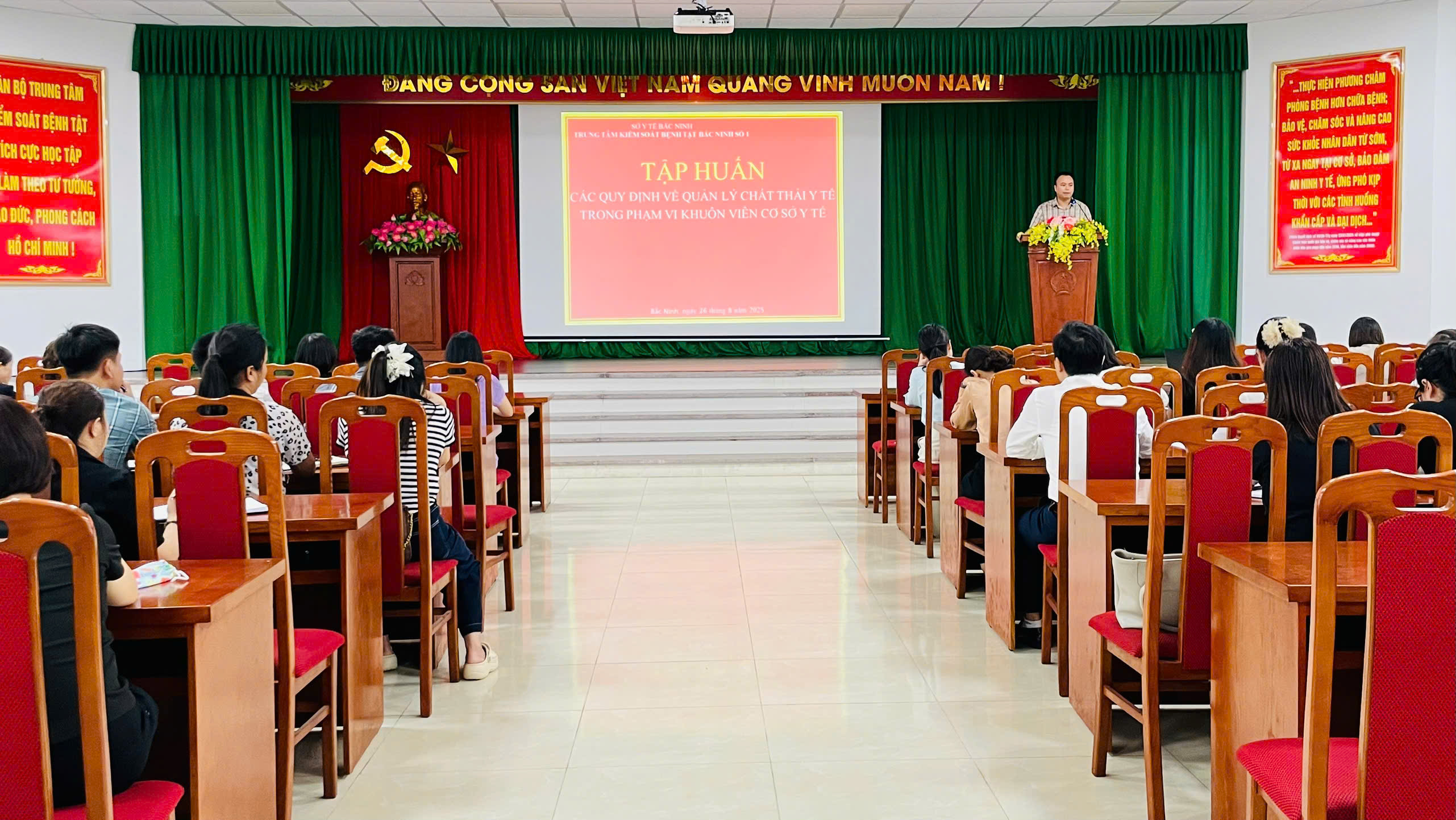 Nhằm bảo đảm an toàn môi trường trong các cơ sở y tế, hạn chế nguy cơ lây nhiễm, góp phần nâng cao chất lượng khám, chữa bệnh. Ngày 26/8/2025, Trung tâm Kiểm soát bệnh tật (KSBT) Bắc Ninh số 1 đã tổ chức tập huấn về Quản lý chất thải y tế trong phạm vi khuôn viên cơ sở y tế cho đối tượng là cán bộ phụ trách công tác quản lý chất thải y tế các bệnh viện đa khoa, chuyên khoa tuyến tỉnh, trung tâm y tế, bệnh viện và phòng khám tư nhân trên địa bàn, cùng cán bộ thuộc các khoa, phòng có liên quan.