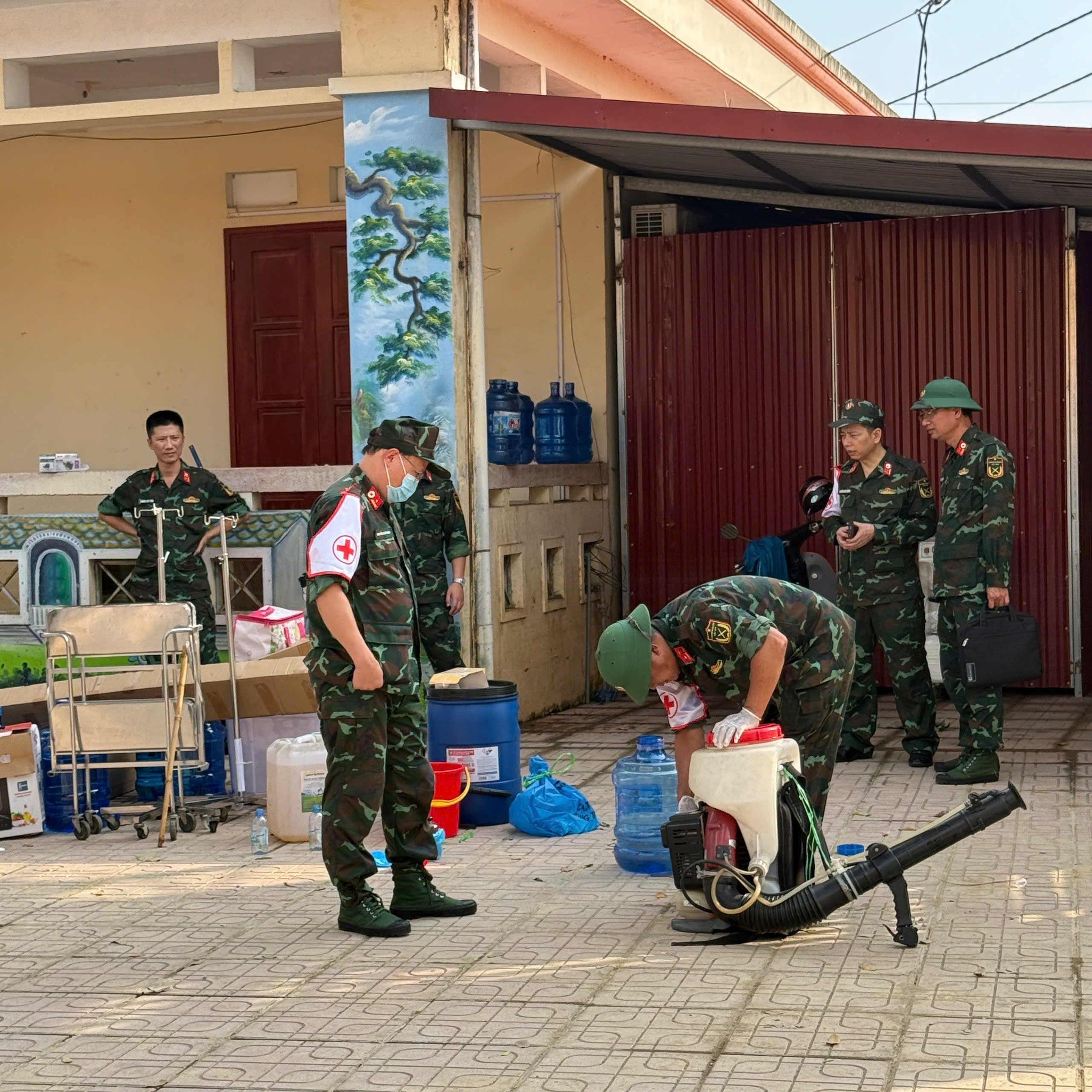 Trước tình hình đó, đoàn công tác của Tổng cục Hậu cần – Kỹ thuật và Học viện Y học Dự phòng Quân đội đã phối hợp với ngành Y tế Bắc Ninh tổ chức phun khử khuẩn môi trường, khám sức khỏe và cấp phát thuốc miễn phí cho người dân tại một số thôn bị ngập sâu. Các y bác sĩ quân y cũng tiến hành kiểm tra nguồn nước sinh hoạt, hướng dẫn người dân vệ sinh cá nhân, vệ sinh môi trường, phòng ngừa các dịch bệnh có nguy cơ bùng phát sau lũ như tiêu chảy, đau mắt đỏ, bệnh ngoài da, sốt xuất huyết… Trong vài ngày tới, đoàn sẽ tiếp tục di chuyển đến hỗ trợ tại 1 số địa phương bị ảnh hưởng nặng nề bởi mưa lũ trong tỉnh.