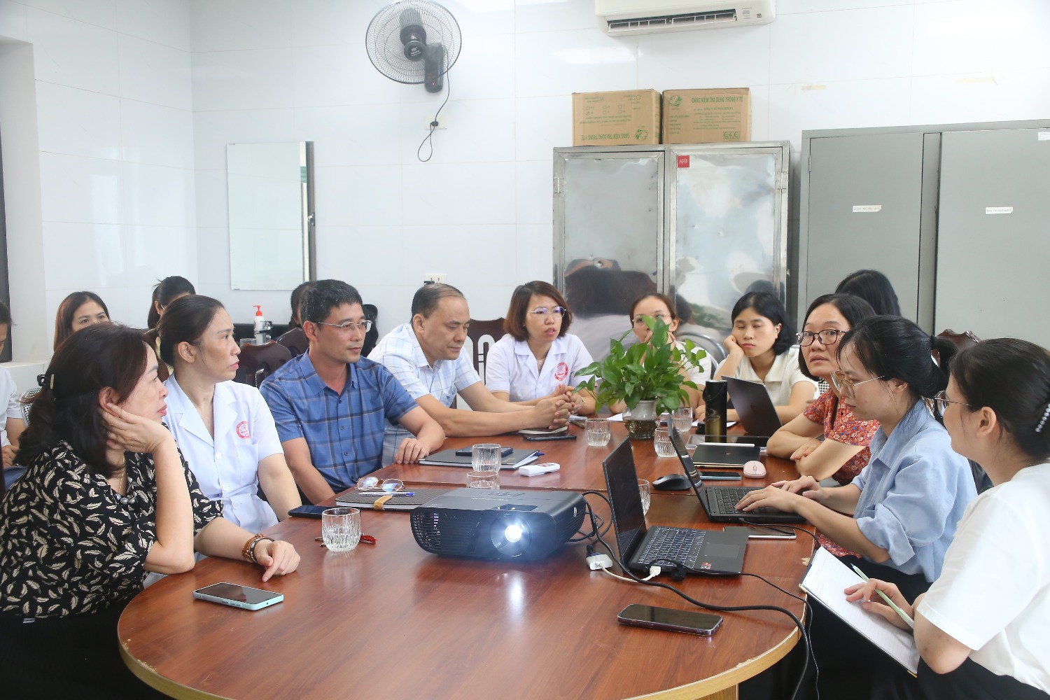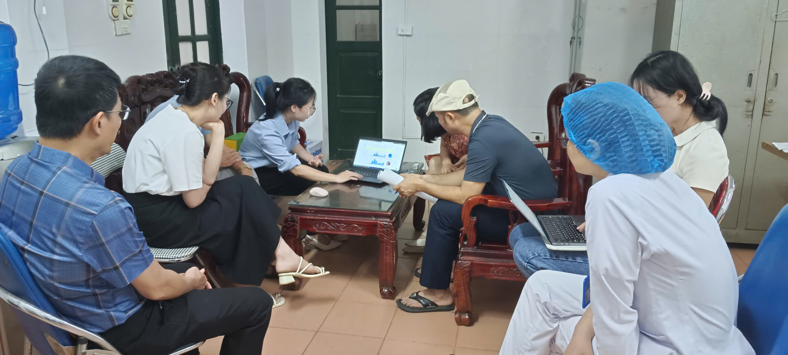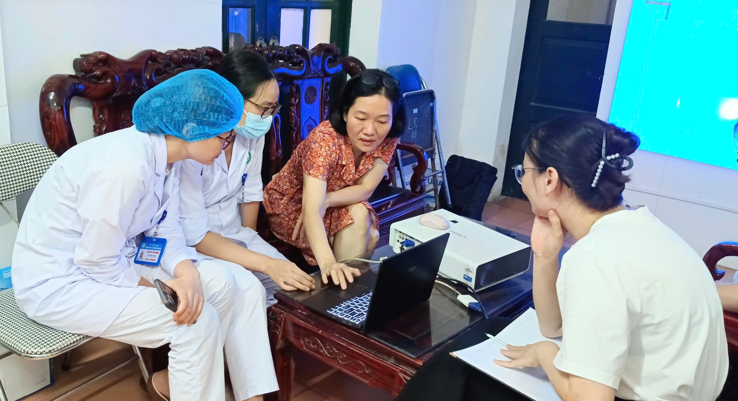 Đoàn giám sát của Viện Vệ sinh dịch tễ hướng dẫn hỗ trợ cán bộ làm công tác PC HIVAIDS TTYT Hiệp Hòa sử dụng phần mềm quản lý thông tin HIVAIDS