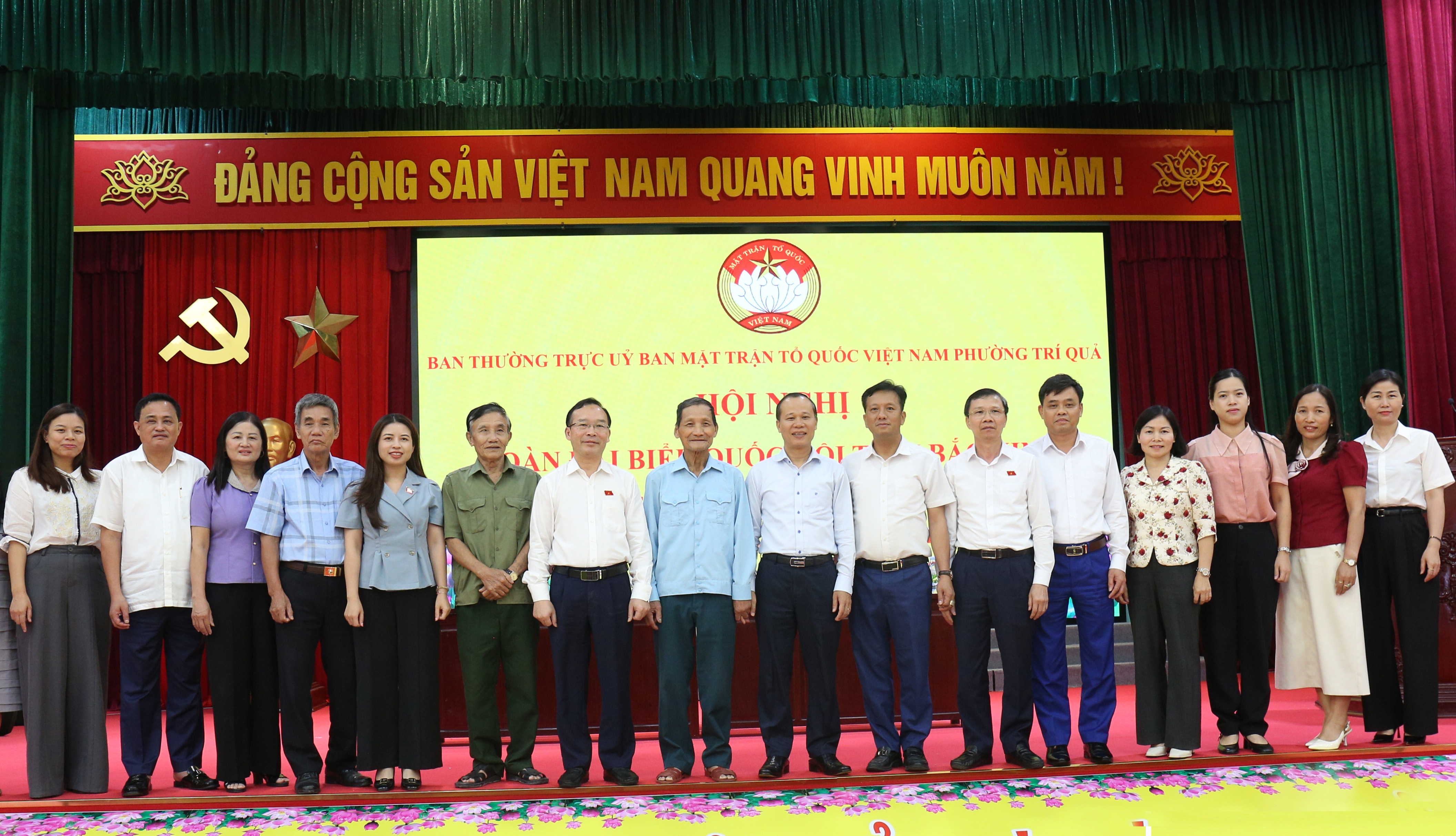 Các đồng chí Đoàn ĐBQH tỉnh cùng các đại biểu chụp ảnh lưu niệm với cử tri phường Trí Quả.
