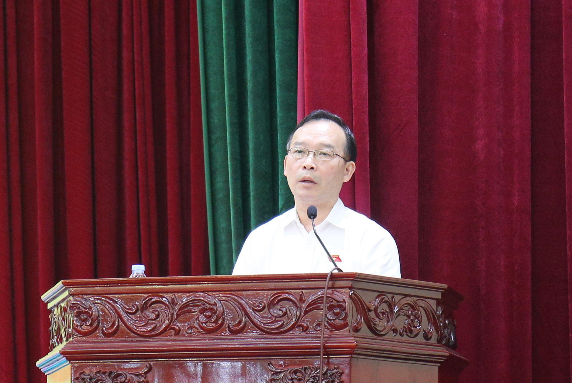 Phó Trưởng Đoàn ĐBQH tỉnh Trần Văn Tuấn phát biểu tại hội nghị tiếp xúc cử tri.