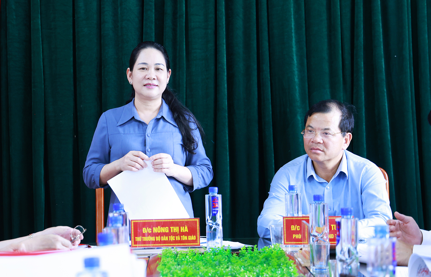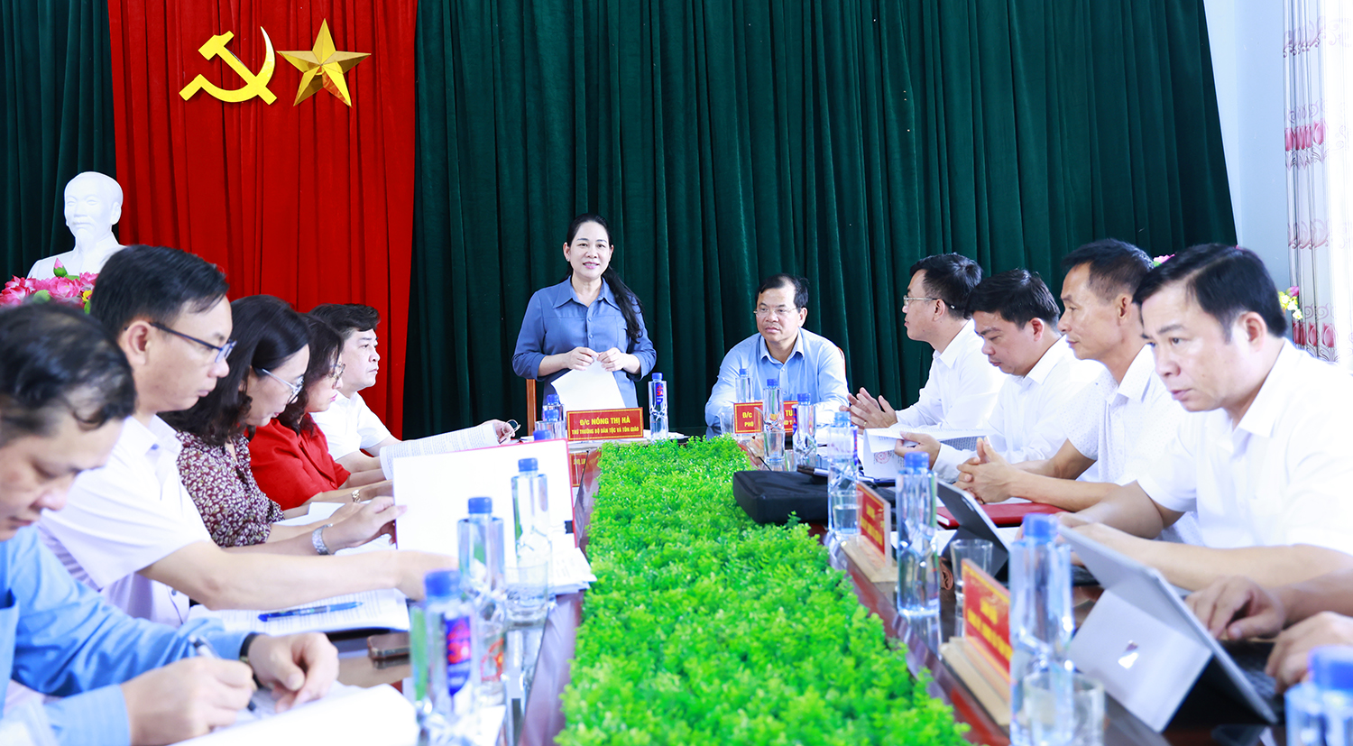 Thứ trưởng Bộ Dân tộc và Tôn giáo Nông Thị Hà phát biểu kết luận buổi làm việc.