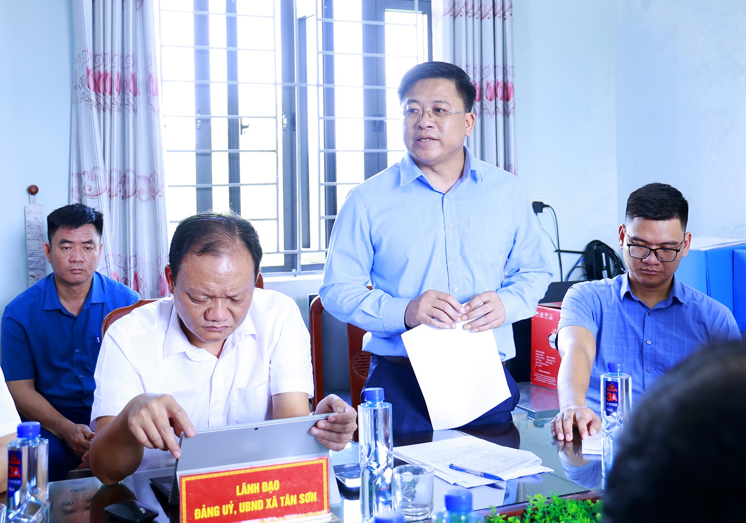 Lãnh đạo xã Tân Sơn phát biểu tại buổi làm việc.