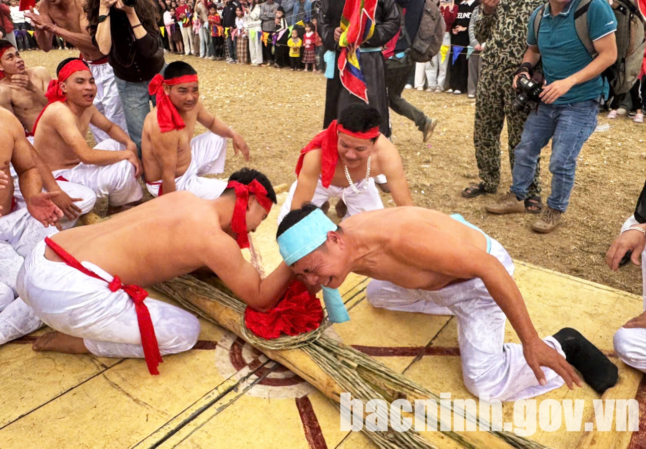 Hai đội dồn sức để kéo dưới sự cổ vũ của nhân dân địa phương và du khách.