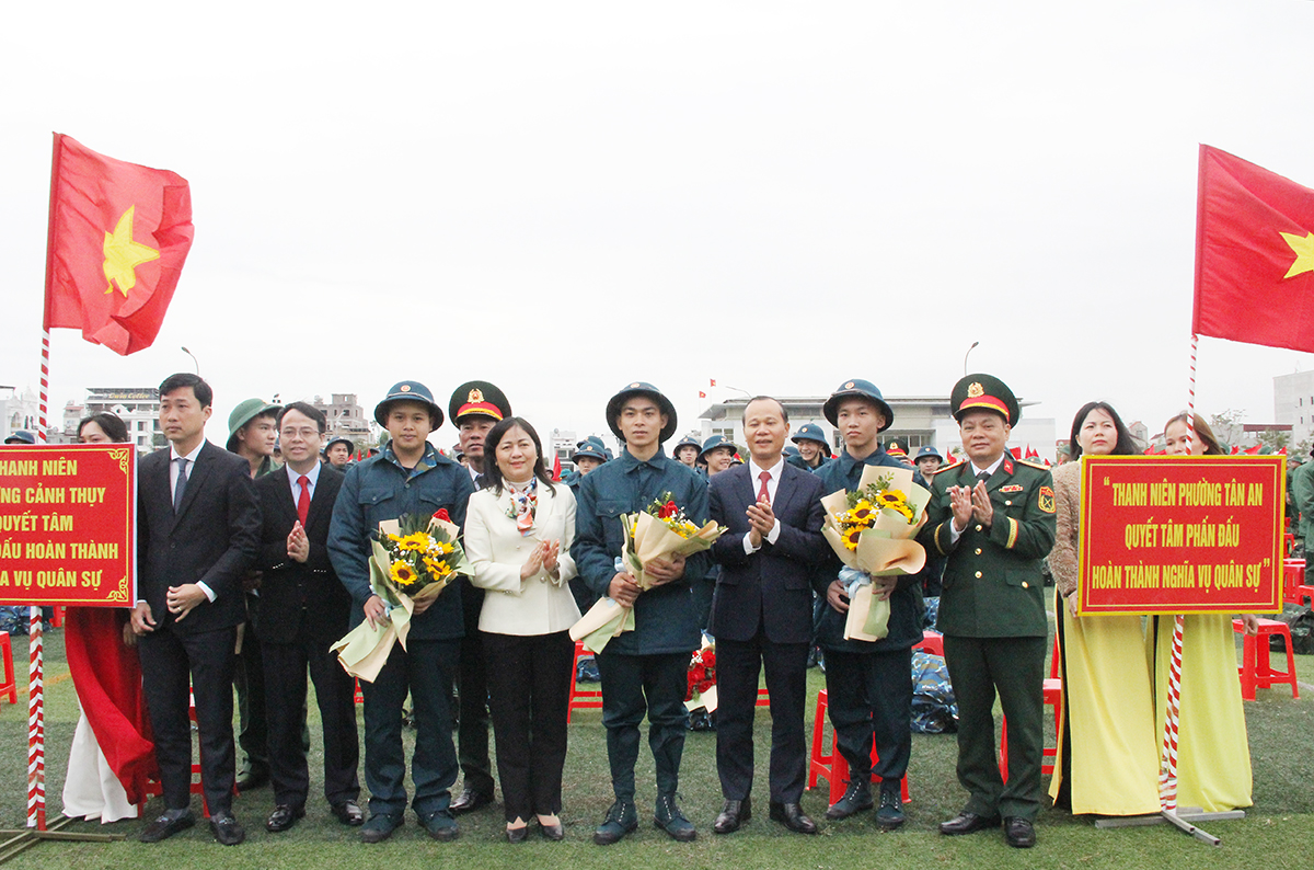 Trong không khí của Ngày hội tòng quân, các đồng chí lãnh đạo tỉnh đã tặng hoa, động viên tân binh trước khi lên đường; từng đoàn quân bước qua “Cổng vinh quang”, thể hiện niềm tự hào và quyết tâm hoàn thành xuất sắc nhiệm vụ được giao.
