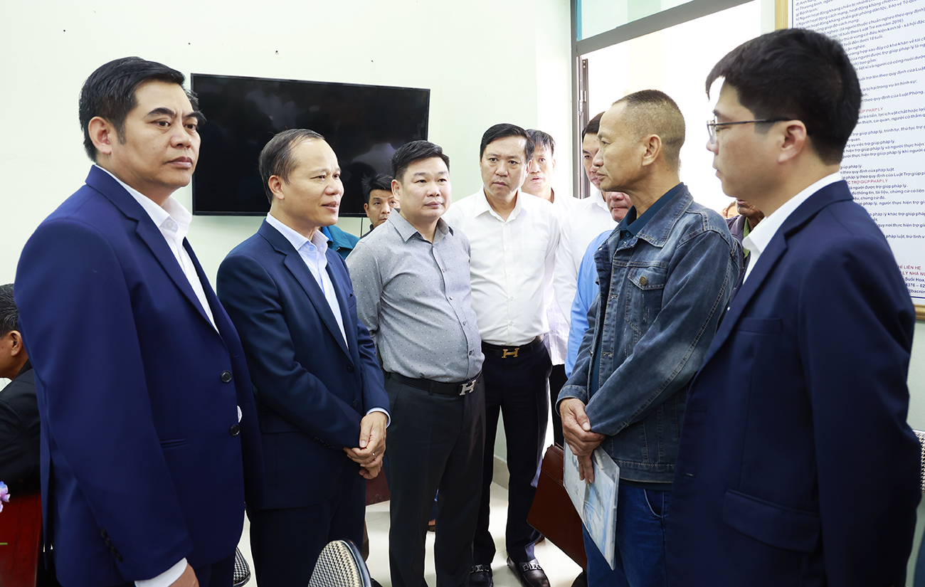 Đồng chí Mai Sơn, Phó Chủ tịch Thường trực UBND tỉnh trao đổi với người dân về tiến độ giải quyết TTHC tại Trung tâm Phục vụ hành chính công xã Nhân Thắng.