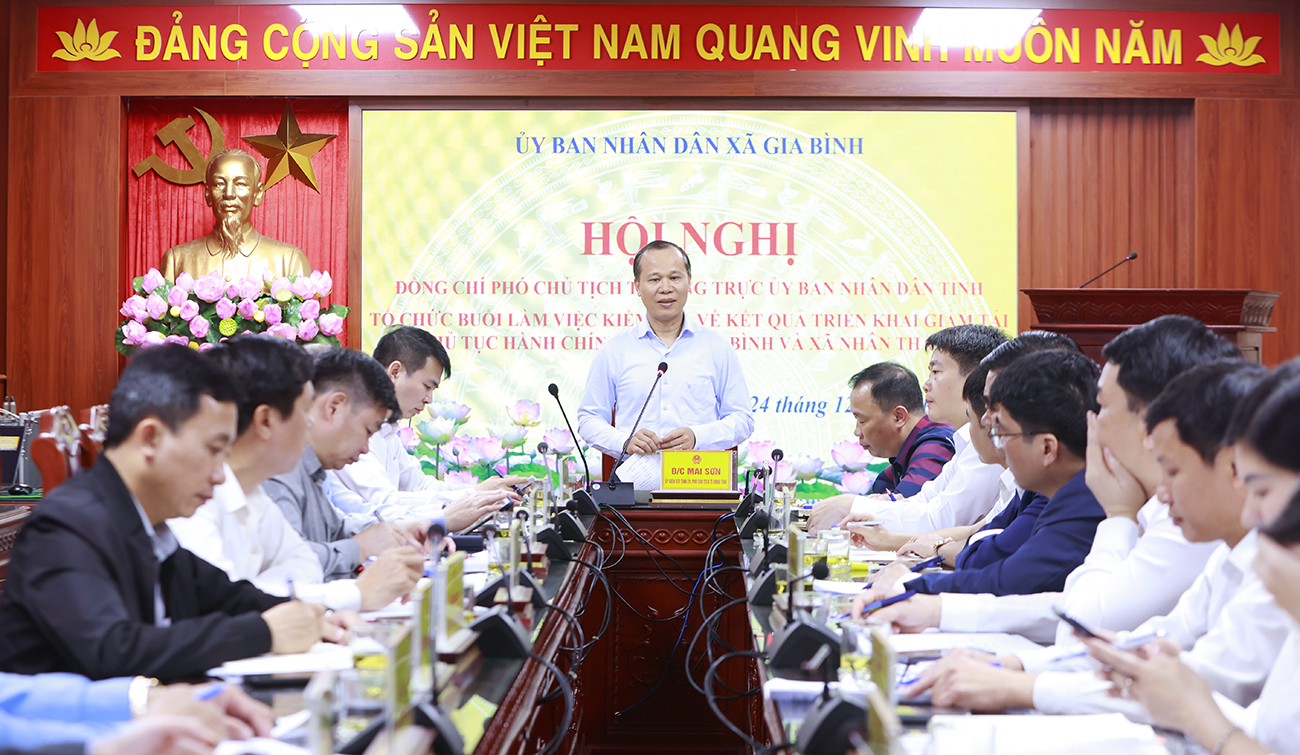 Kết luận buổi làm việc, đồng chí Mai Sơn, Phó Chủ tịch Thường trực UBND tỉnh ghi nhận, đánh giá cao nỗ lực của các sở, ngành, địa phương trong việc triển khai phương án bố trí nhân lực của các cơ quan ngành dọc nhằm giảm tải TTHC tại cấp xã. Đồng chí nhấn mạnh kết quả bước đầu cho thấy chủ trương này là đúng hướng, phù hợp với yêu cầu thực tiễn, thể hiện rõ qua tỷ lệ hài lòng của người dân tại xã Gia Bình và xã Nhân Thắng đều đạt mức cao.