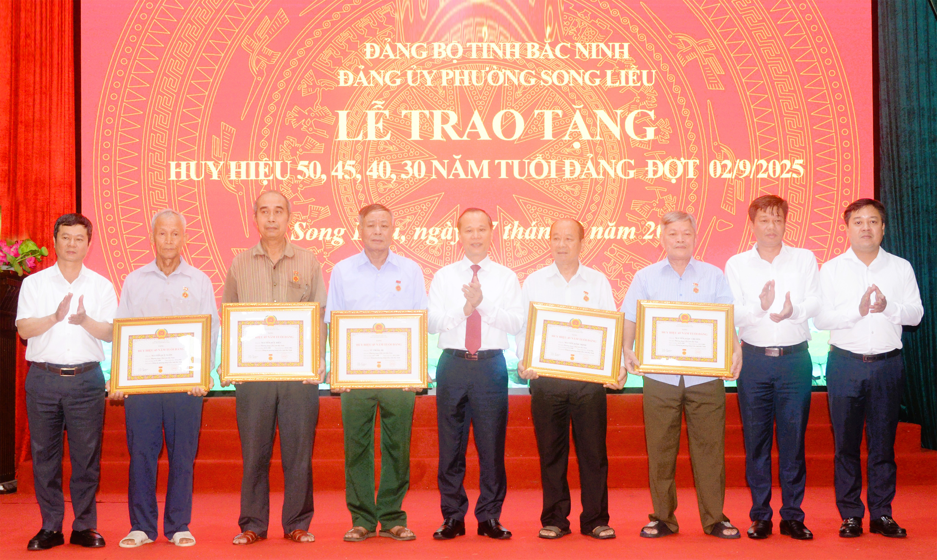 Đợt 2/9, Đảng bộ phường Song Liễu có 23 đảng viên vinh dự được nhận Huy hiệu Đảng, gồm: 1 đảng viên 30 năm tuổi Đảng, 12 đảng viên 40 năm tuổi Đảng, 5 đảng viên 45 năm tuổi Đảng và 5 đảng viên 50 năm tuổi Đảng. Đảng bộ phường Trí Quả có 31 đảng viên được nhận Huy hiệu Đảng. Trong đó, 1 đảng viên Huy hiệu 60 năm tuổi Đảng; 4 đảng viên Huy hiệu 55 năm tuổi Đảng; 5 đảng viên Huy hiệu 50 năm tuổi Đảng; 11 đảng viên Huy hiệu 45 năm tuổi Đảng; 5 đảng viên Huy hiệu 40 năm tuổi Đảng; 5 đảng viên Huy hiệu 30 năm tuổi Đảng.