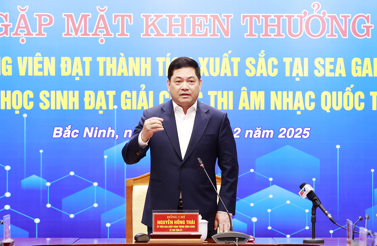 Phát biểu tại buổi gặp mặt, đồng chí Nguyễn Hồng Thái, Bí thư Tỉnh ủy bày tỏ niềm vui, chúc mừng các vận động viên Bắc Ninh đã đạt thành tích cao tại SEA Games 33 và học sinh đạt giải Cuộc thi Âm nhạc quốc tế. Đồng chí biểu dương tinh thần nỗ lực, ý chí bền bỉ và khát vọng cống hiến của các vận động viên, học sinh; trong đó đặc biệt nhấn mạnh vận động viên Nguyễn Thị Oanh – gương mặt tiêu biểu của điền kinh Việt Nam với thành tích xuất sắc qua nhiều kỳ SEA Games.