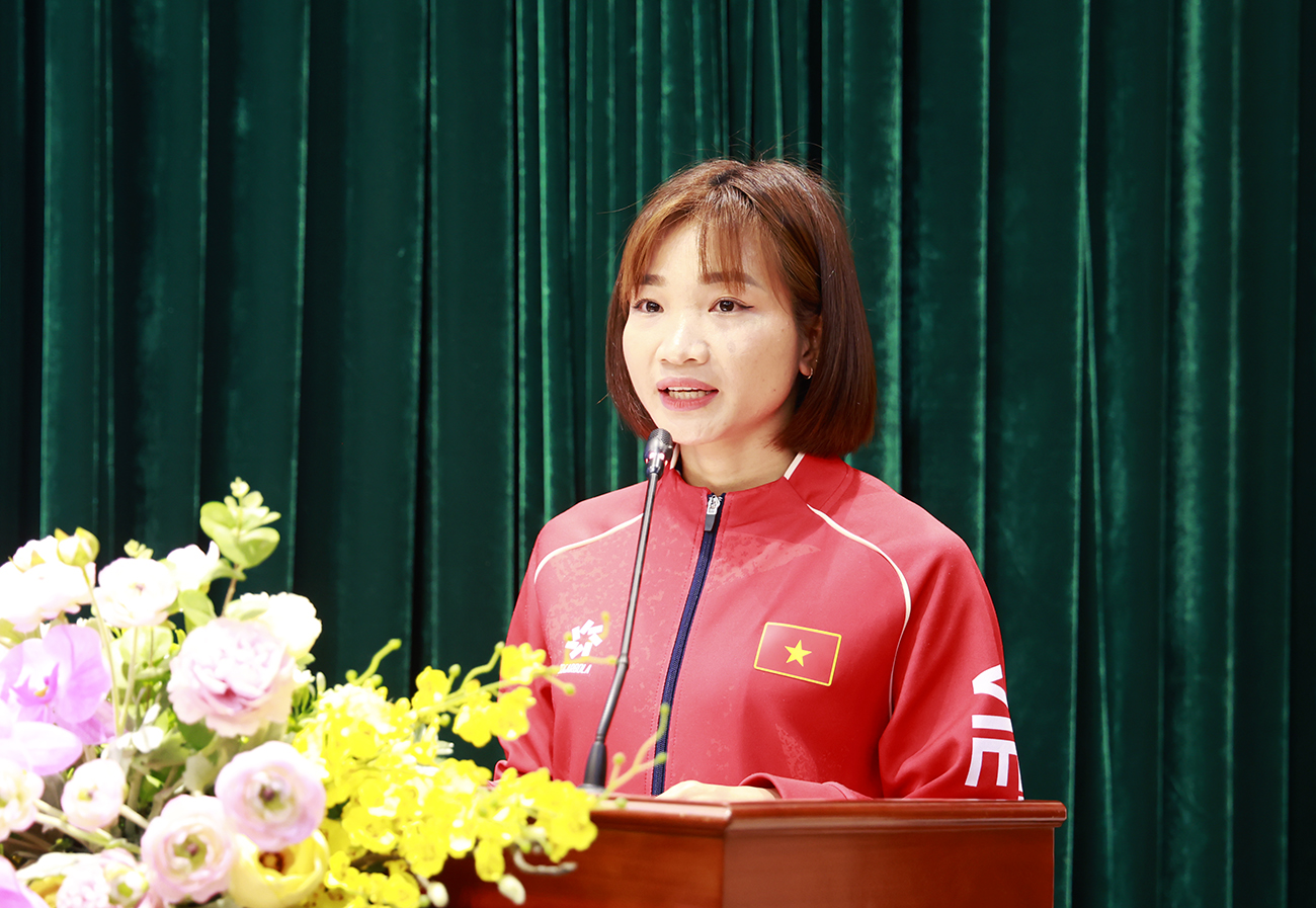 Thay mặt các vận động viên, vận động viên Nguyễn Thị Oanh phát biểu cảm ơn sự quan tâm của lãnh đạo tỉnh, các cơ quan, ban, ngành, doanh nghiệp, huấn luyện viên và gia đình; đồng thời khẳng định sẽ tiếp tục nỗ lực rèn luyện, thi đấu, học tập để mang lại nhiều thành tích cao hơn cho thể thao và giáo dục tỉnh Bắc Ninh trong thời gian tới.