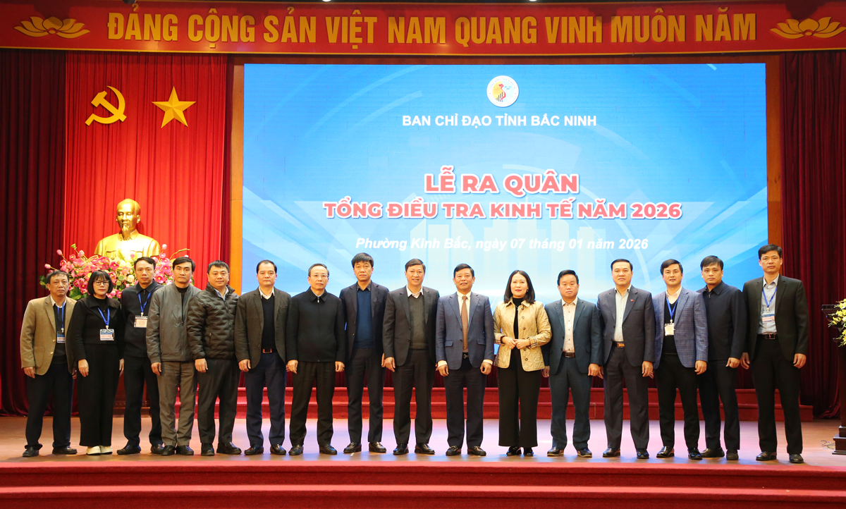 (BNP) - Chiều 07/01, tại phường Kinh Bắc, Ban Chỉ đạo Tổng điều tra kinh tế năm 2026 tỉnh Bắc Ninh tổ chức Lễ ra quân Tổng điều tra kinh tế năm 2026. Đồng chí Ngô Tân Phượng, Phó Chủ tịch UBND tỉnh, Trưởng Ban Chỉ đạo tỉnh dự và chỉ đạo.