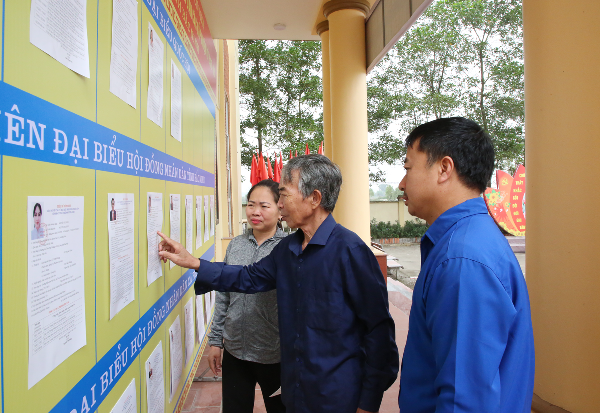Các thành viên tổ bầu cử trên địa bàn phường Vũ Ninh tập trung rà soát danh sách cử tri.