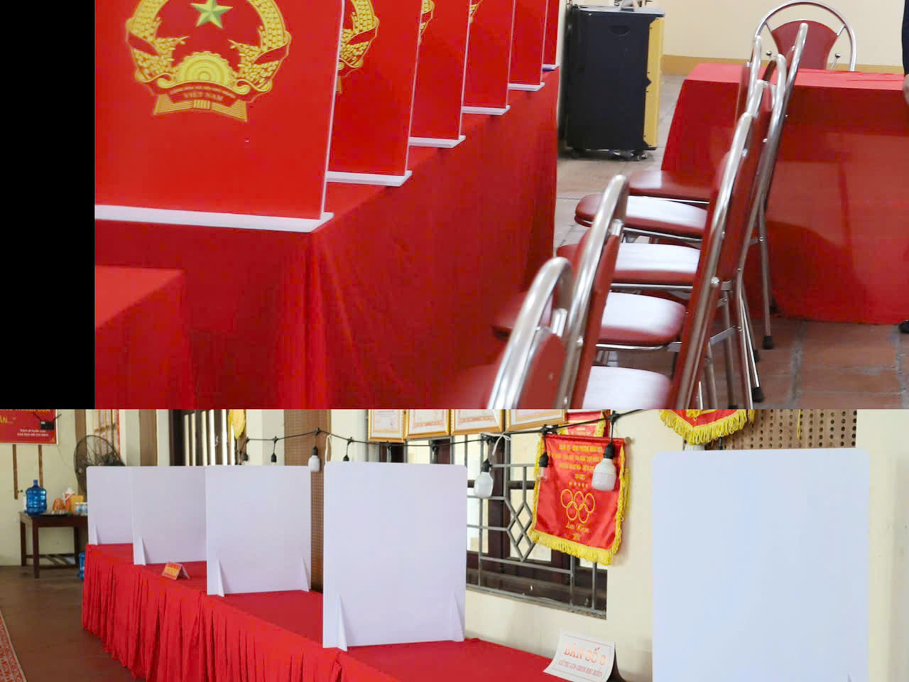 Tại các bàn ghi phiếu đều có vách ngăn theo quy định.