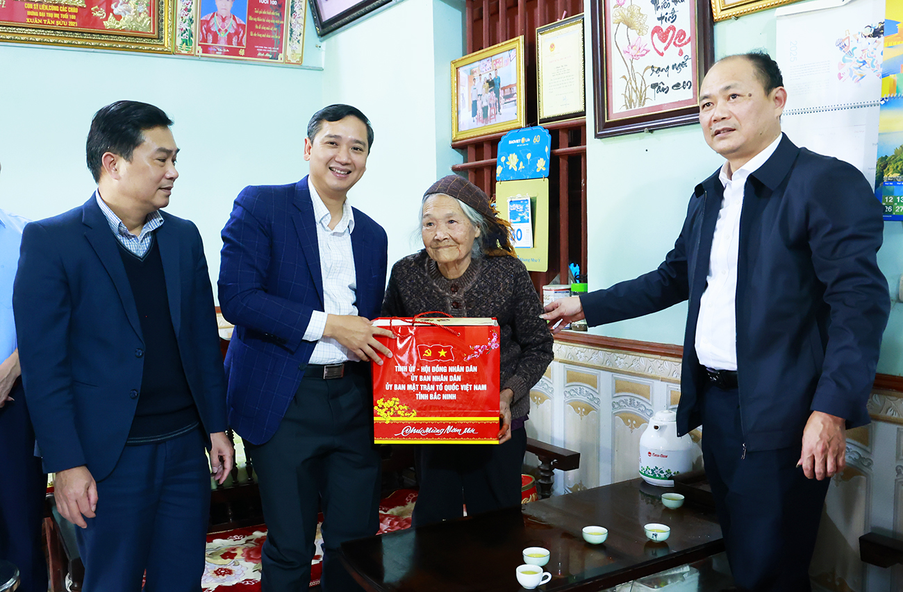 (BNP) - Nhân dịp Tết Nguyên đán Bính Ngọ 2026, chiều 29/1, đồng chí Nguyễn Việt Oanh, Phó Bí thư Tỉnh uỷ, Chủ tịch HĐND tỉnh đã đến thăm, tặng quà Mẹ Việt Nam Anh hùng, người cao tuổi, thân nhân liệt sĩ và người có công tiêu biểu trên địa bàn các xã Ngọc Thiện và Tân Yên. Cùng đi có đại diện lãnh đạo Sở Nội vụ, Sở Y tế và lãnh đạo các địa phương.
