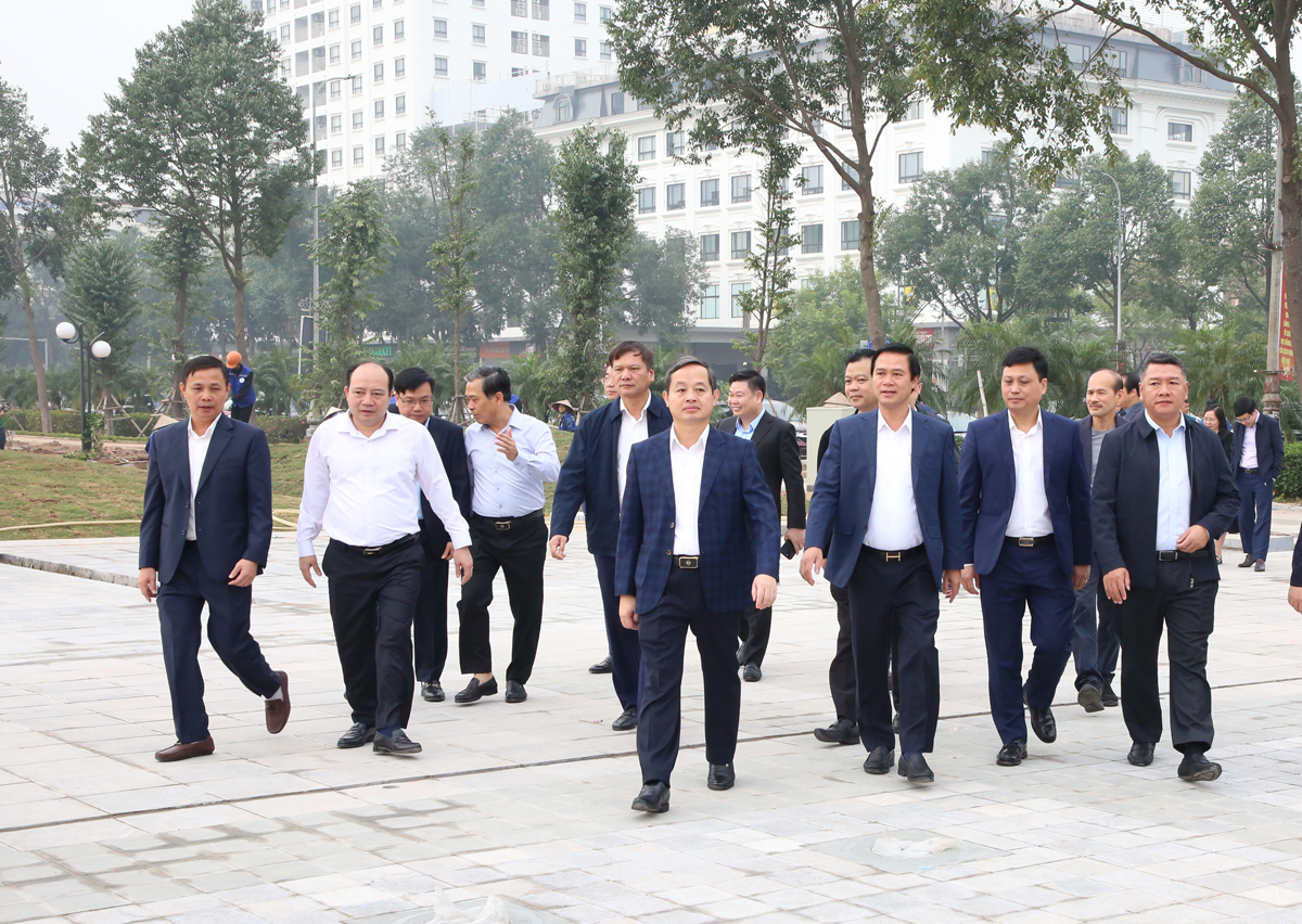 (BNP) - Sáng 7/12, đồng chí Phạm Hoàng Sơn, Phó Bí thư Tỉnh ủy, Chủ tịch UBND tỉnh đi kiểm tra tiến độ thực hiện Khu đền thờ Bác Hồ thuộc dự án đầu tư xây dựng hạ tầng kỹ thuật và các công trình phụ trợ Công viên Văn Miếu, thuộc phường Kinh Bắc và Võ Cường, tỉnh Bắc Ninh.