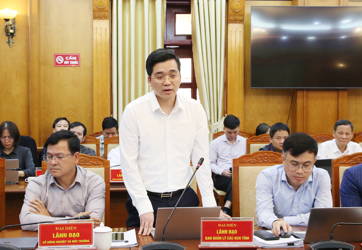 Lãnh đạo Ban Quản lý các Khu công nghiệp tỉnh trao đổi tại hội nghị.