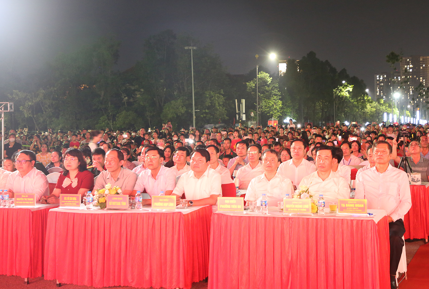 Tới dự và thưởng thức chương trình nghệ thuật có các đồng chí: Vương Quốc Tuấn, Uỷ viên Dự khuyết Ban Chấp hành Trung ương Đảng, Phó Bí thư Tỉnh uỷ, Chủ tịch UBND tỉnh; Trần Thị Hằng, Ủy viên Ban Thường vụ Tỉnh ủy, Phó Chủ tịch Thường trực HĐND tỉnh; Phạm Văn Thịnh, Ủy viên Ban Thường vụ Tỉnh ủy, Phó Chủ tịch UBND tỉnh, Trưởng Đoàn ĐBQH tỉnh; Lê Xuân Lợi, Ủy viên Ban Thường vụ Tỉnh ủy, Phó Chủ tịch UBND tỉnh; Tạ Đăng Đoan, Ủy viên Ban Thường vụ Tỉnh ủy, Bí thư Đảng ủy phường Kinh Bắc; Nguyễn Anh Tuấn, Phó Chủ tịch HĐND tỉnh; Trần Thị Vân, Phó Trưởng Đoàn ĐBQH tỉnh; lãnh đạo các sở, ban, ngành, địa phương trong tỉnh cùng đông đảo Nhân dân.