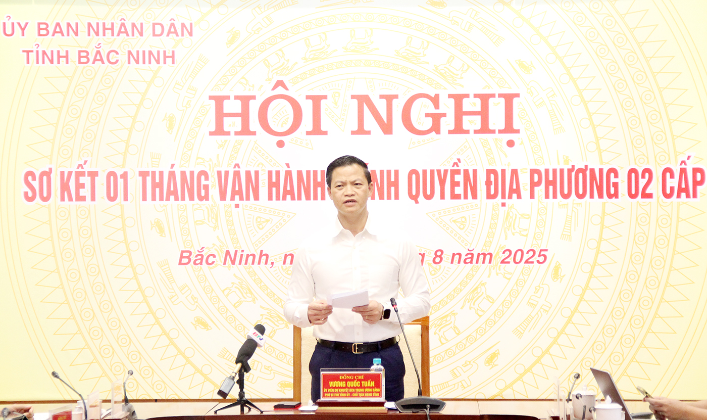 (BNP) - Chiều 14/8, UBND tỉnh Bắc Ninh tổ chức hội nghị trực tuyến sơ kết 1 tháng sau hợp nhất tỉnh và vận hành mô hình chính quyền địa phương 2 cấp. Đồng chí Vương Quốc Tuấn, Ủy viên dự khuyết Trung ương Đảng, Phó Bí thư Tỉnh ủy, Chủ tịch UBND tỉnh chủ trì hội nghị.