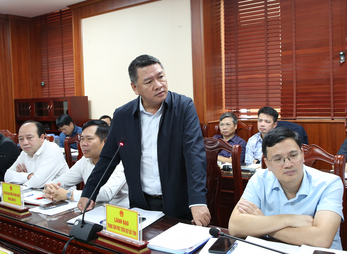 Giám đốc Trung tâm Phát triển quỹ đất tỉnh Đỗ Đình Hữu báo cáo tại hội nghị.