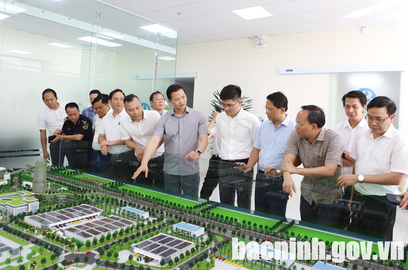 Chủ tịch UBND tỉnh Vương Quốc Tuấn và Phó Chủ tịch UBND tỉnh Phạm Văn Thịnh cùng đoàn công tác thăm mô hình triển khai dự án Trung tâm Logistics Quốc tế Bắc Giang.