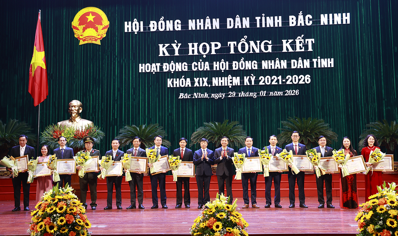 Nhân dịp này, nhằm ghi nhận và biểu dương những đóng góp, thành tích xuất sắc của các tập thể, cá nhân trong quá trình công tác, góp phần vào sự nghiệp xây dựng và bảo vệ Tổ quốc; 02 cá nhân được tặng thưởng Huân chương Lao động hạng Ba; 01 cá nhân được Thủ tướng Chính phủ tặng Bằng khen. Đồng thời, Chủ tịch UBND tỉnh Bắc Ninh tặng Bằng khen cho 14 tập thể và 62 cá nhân có thành tích xuất sắc trong hoạt động của HĐND tỉnh và trong công tác phối hợp, tham mưu, phục vụ các hoạt động của HĐND tỉnh khóa XIX, nhiệm kỳ 2021-2026./.