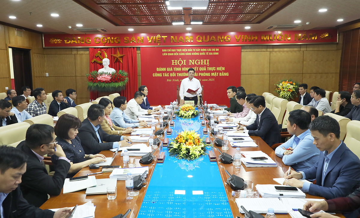 Chiều 21/11, Ban chỉ đạo (BCĐ) thực hiện đầu tư xây dựng các dự án liên quan đến Cảng hàng không quốc tế Gia Bình tỉnh Bắc Ninh tổ chức hội nghị đánh giá tình hình, kết quả thực hiện công tác bồi thường giải phóng mặt bằng (GPMB) dự án Cảng hàng không quốc tế Gia Bình. Đồng chí Nguyễn Hồng Thái, Ủy viên Trung ương Đảng, Bí thư Tỉnh ủy, Trưởng BCĐ chủ trì hội nghị. Cùng dự có các đồng chí: Phạm Hoàng Sơn, Phó Bí thư Tỉnh ủy, Chủ tịch UBND tỉnh, Phó Trưởng ban Thường trực BCĐ; Đào Quang Khải, Ủy viên Ban Thường vụ Tỉnh ủy, Phó Chủ tịch UBND tỉnh; lãnh đạo các sở, ngành, địa phương, đơn vị liên quan và Nhà đầu tư.