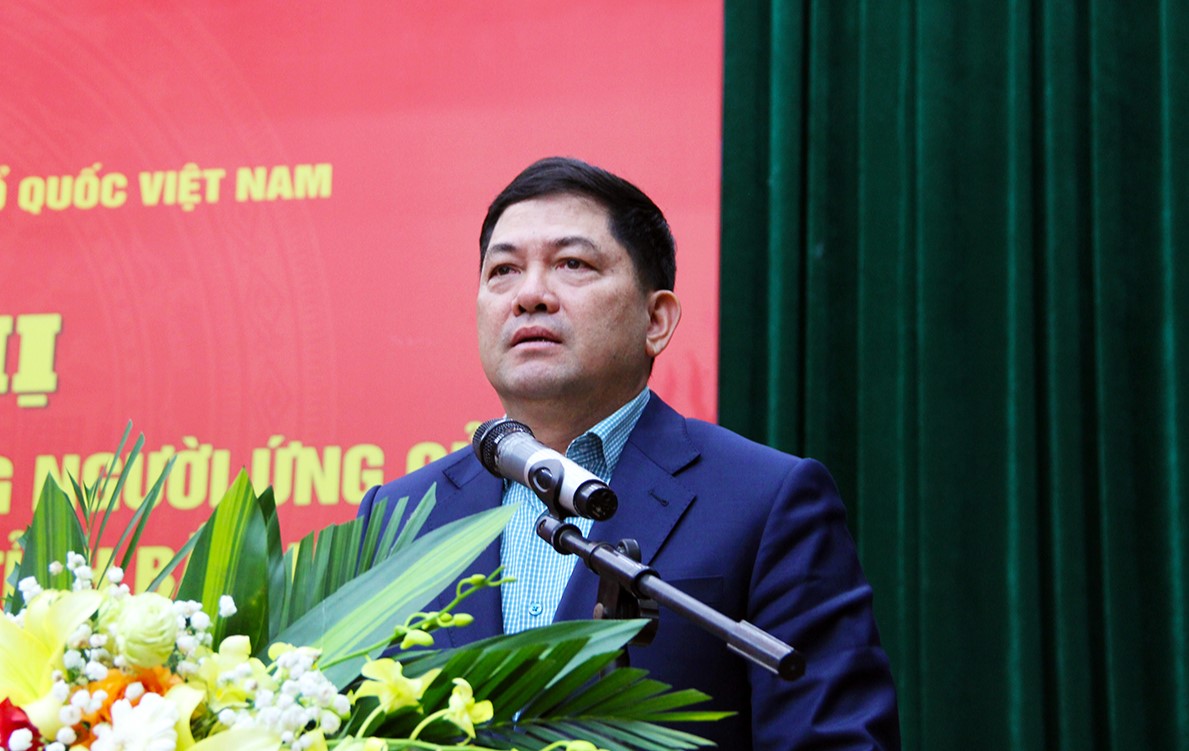 Bí thư Tỉnh uỷ Nguyễn Hồng Thái trình bày Chương trình hành động trước cử tri địa phương.