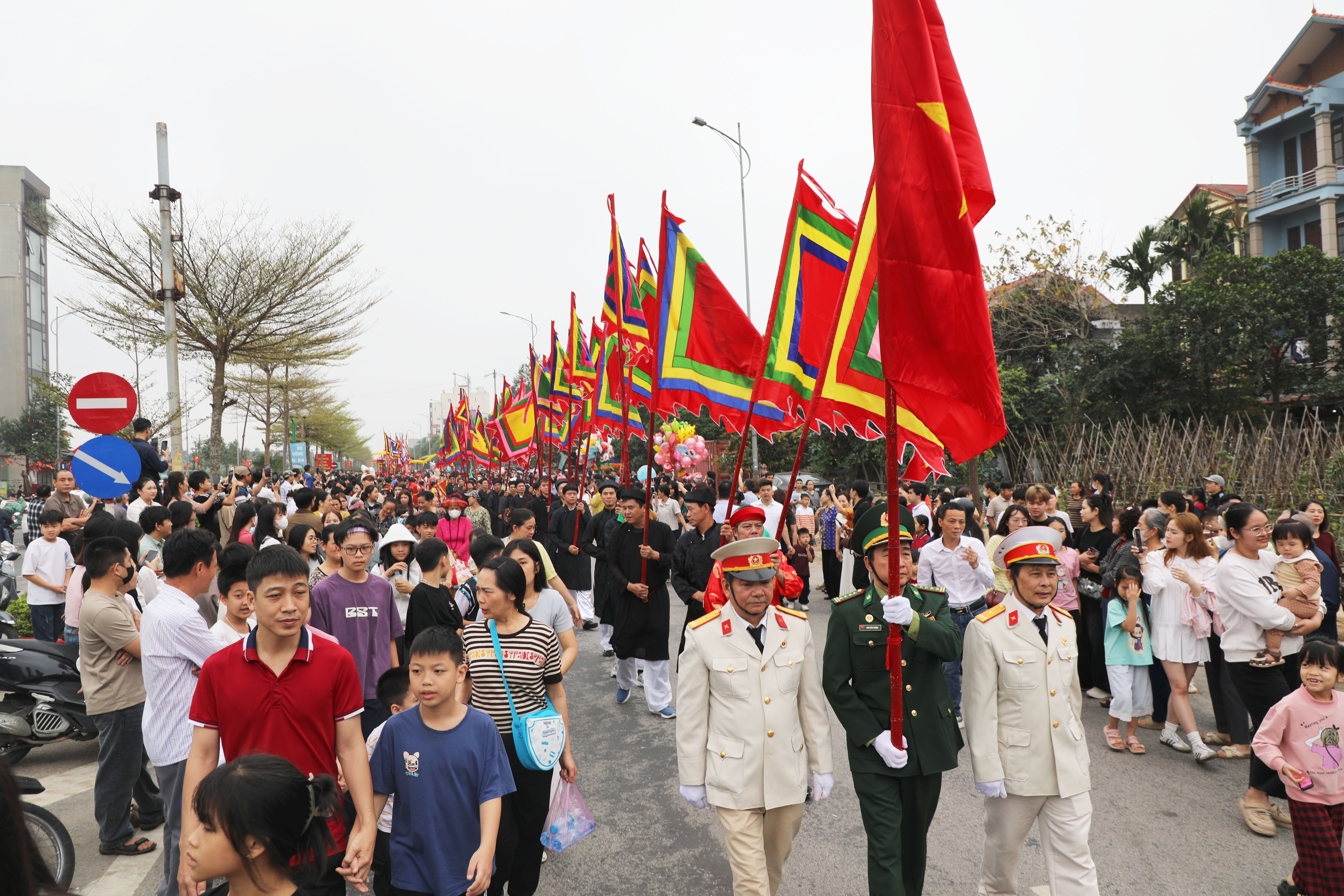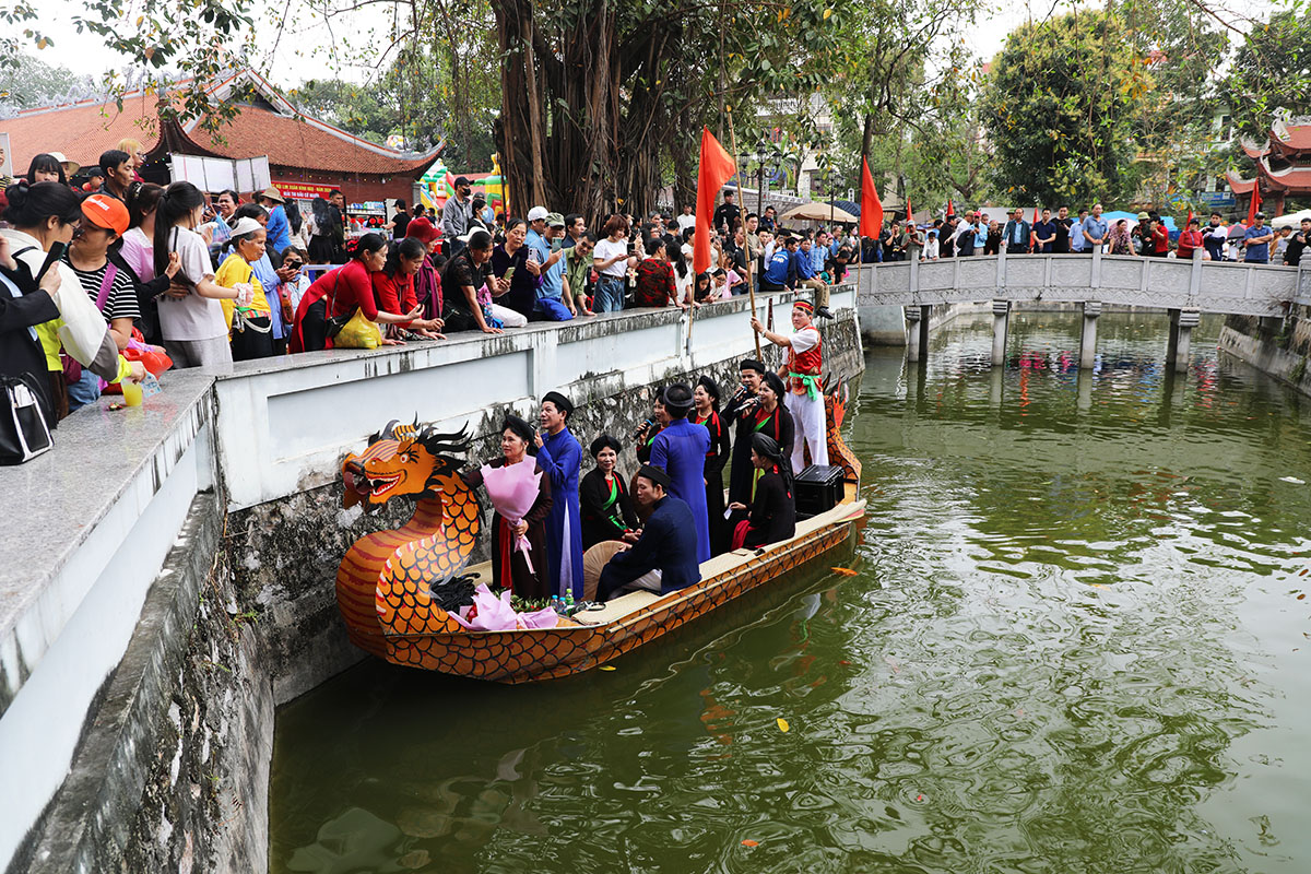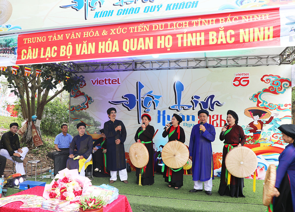 Ngay từ đầu giờ sáng, trên khắp các ngả đường của 7 thôn thuộc xã Tiên Du đã tấp nập người dân và du khách về trẩy hội. Những liền anh, liền chị lúng liếng nón quai thao và vang vọng những làn điệu Quan họ mượt mà, đằm thắm làm xao xuyến lòng người.